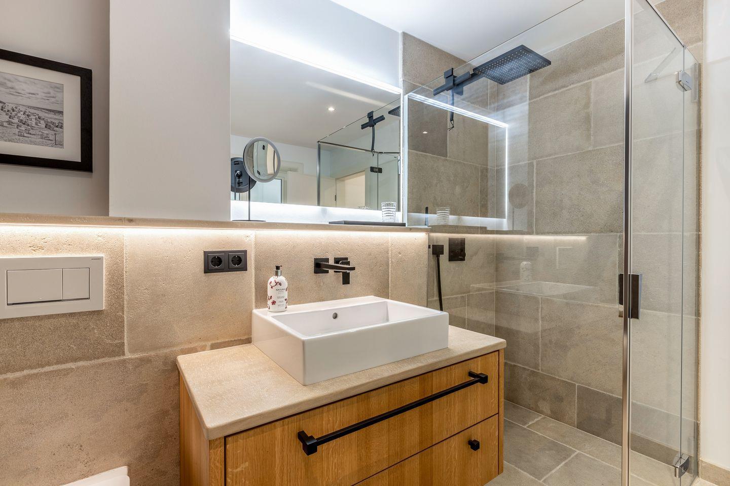 Das Obergeschoss verfügt über zwei weitere Schlafzimmer, eines davon ist mit einem Doppelbett, Flatscreen-TV und Badezimmer en Suite ausgestattet. Der andere Raum bietet Ihnen ein großes Einzelbett (110x200cm) und ebenfalls ein Badezimmer en Suite.