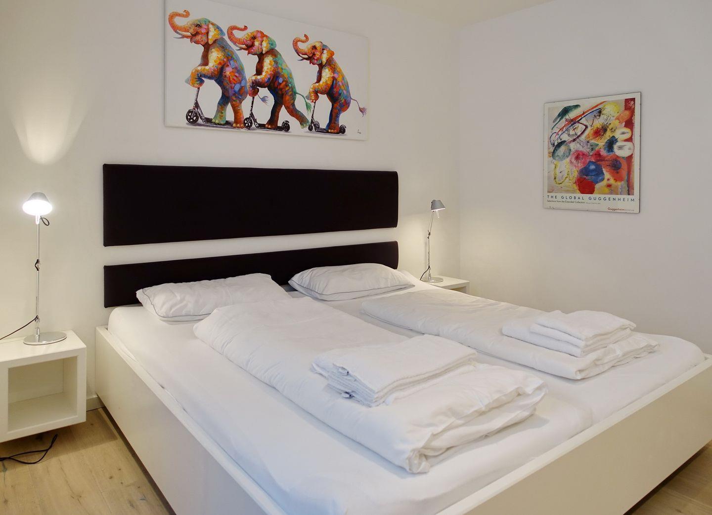 Souterrain: 1 großzügiger Raum mit Doppelbett (2x100x200cm) mit viel Schrankplatz und Flatscreen-TV. 1 weiterer Raum mit Doppelbett (2x90x200cm)), TV, Playstation 4. 1 großes und helles Wohlfühlbad mit Doppelwaschtisch, Wanne/Dusche/WC, Gira Unterputzradio und Waschmaschine/ Trockner. Zweites Bad mit Dusche, WC und Gira Unterputzradio. Im gesamten Souterrain hochwertiger Parkett mit Fußbodenheizung.
