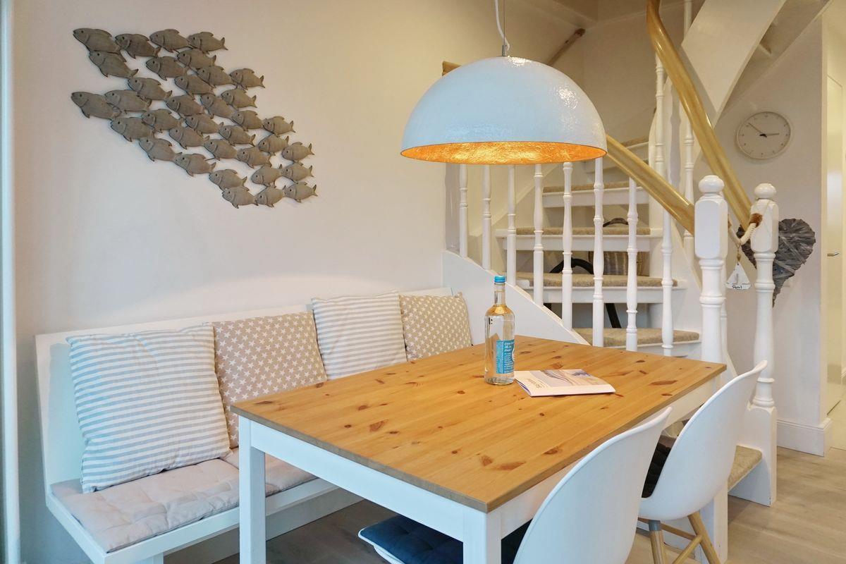 Im Inneren verzaubert Sie sofort die nordische Gemütlichkeit: durch das große Panoramafenster wird der Wohnraum lichtdurchflutet. Eine große, gemütliche Couch und ein sehr schöner Essbereich laden zum ausgiebigen Entspannen ein. Die kleine Küche ist offen gestaltet und bietet Ihnen einen Backofen, Ceranfeld und eine Geschirrspülmaschine.