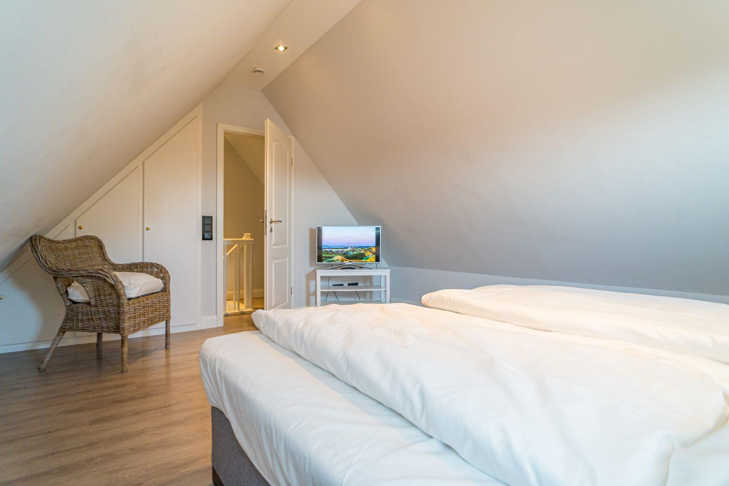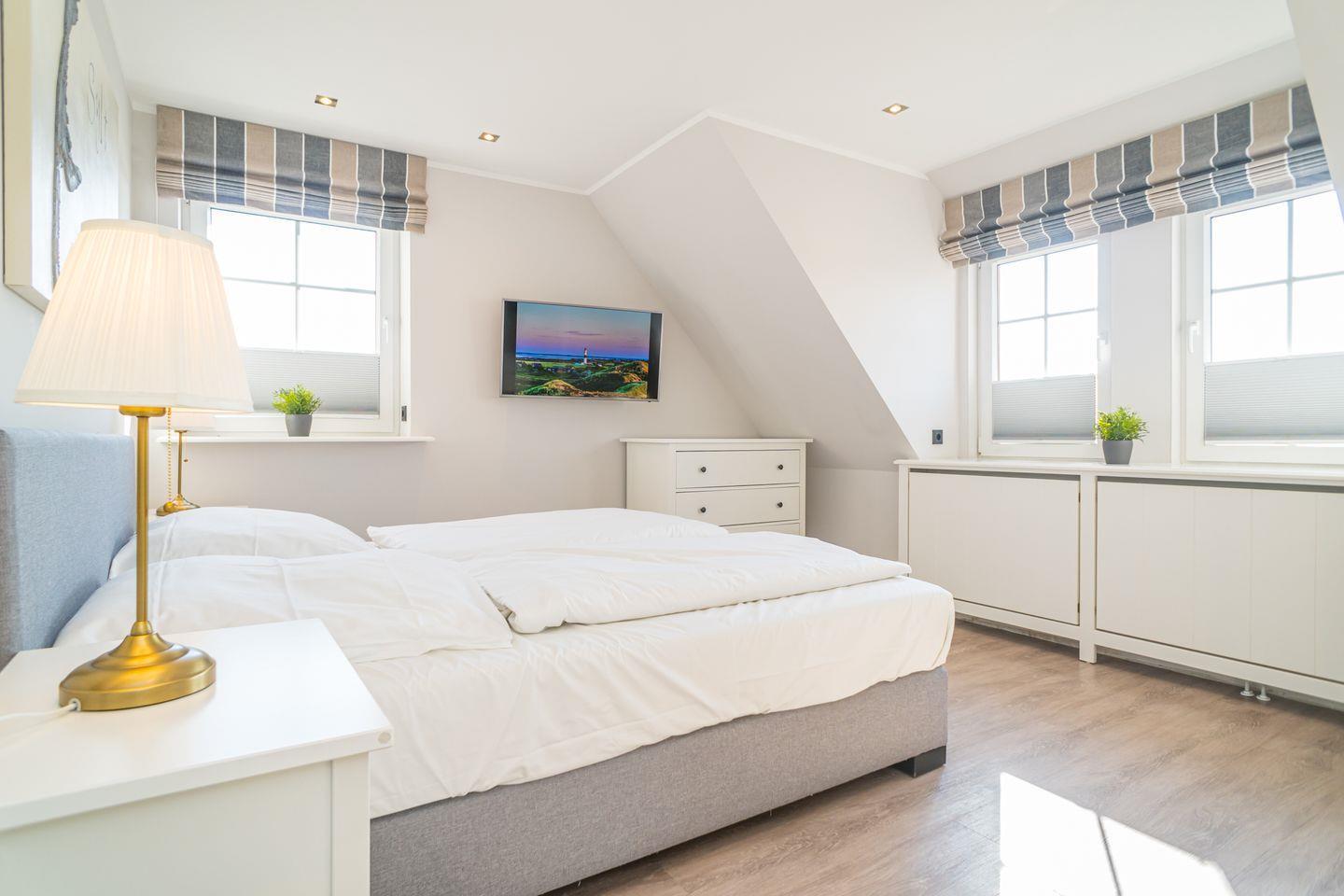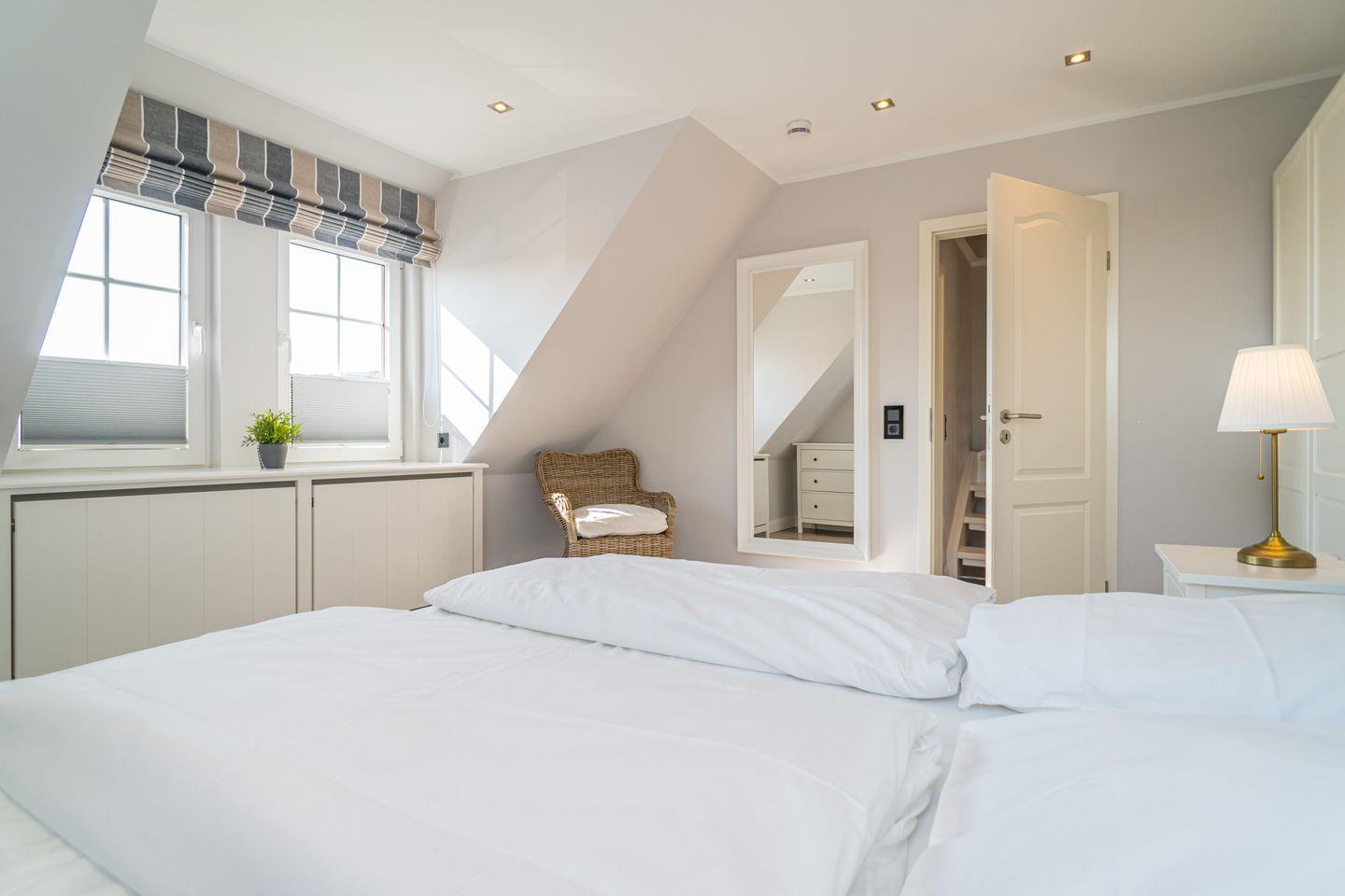 Die beiden Schlafzimmer befinden sich im Ober- bzw. Dachgeschoss und verfügen über komfortable Boxspringetten und schallisolierte Fenster.