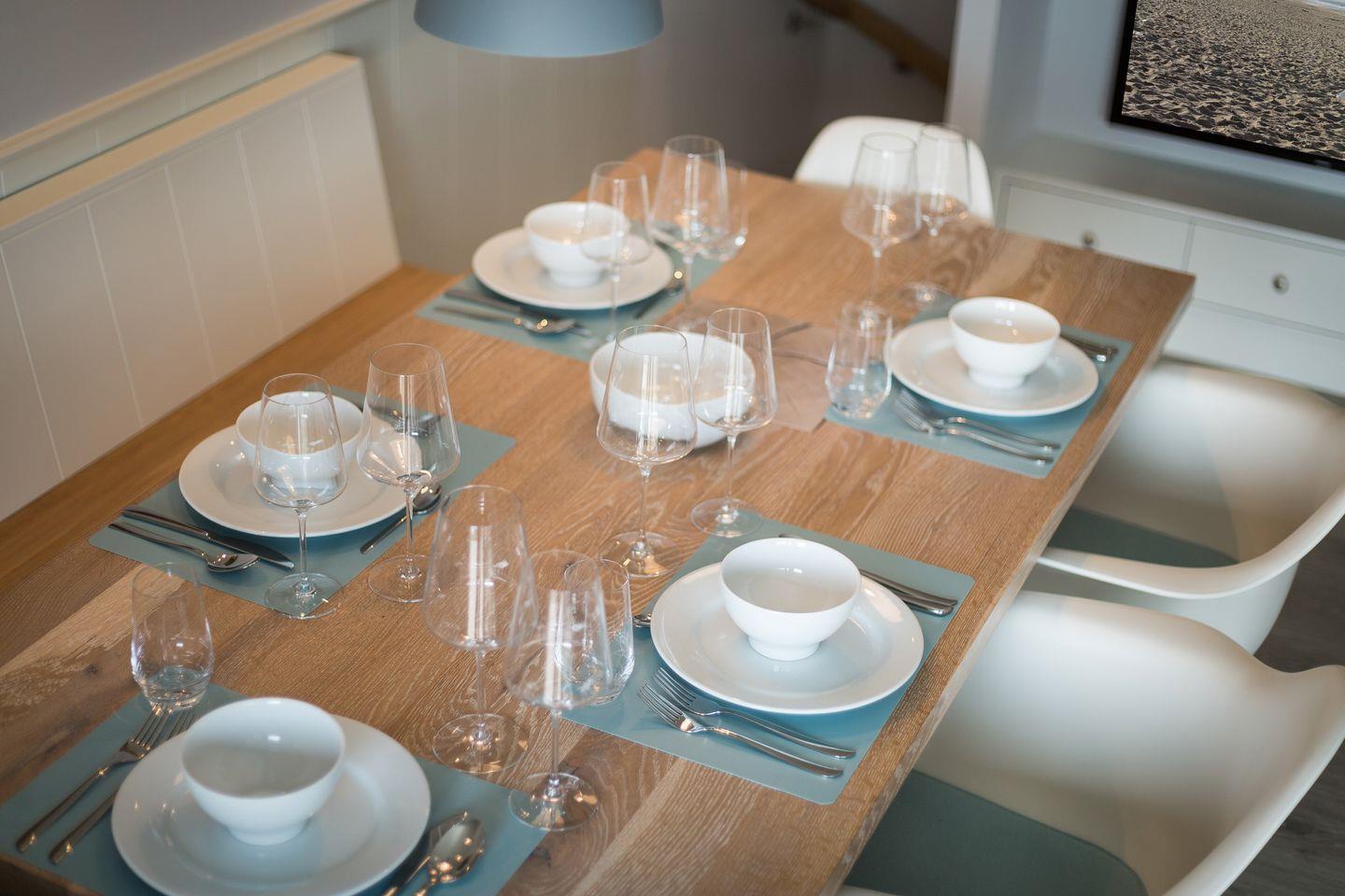 Klare Strukturen und helle Farben sorgen im Inneren des Hauses für ein modernes Ambiente. Die offene Küche ist geschickt durch einen Raumtrenner optisch vom Wohnbereich abgetrennt und lässt mit Weinkühlschrank, Induktionsherd und Nespresso-Kaffeemaschine keine Wünsche offen. Im Erdgeschoss finden Sie außerdem ein Schlafzimmer mit einem Einzelbett und ein Duschbad.
