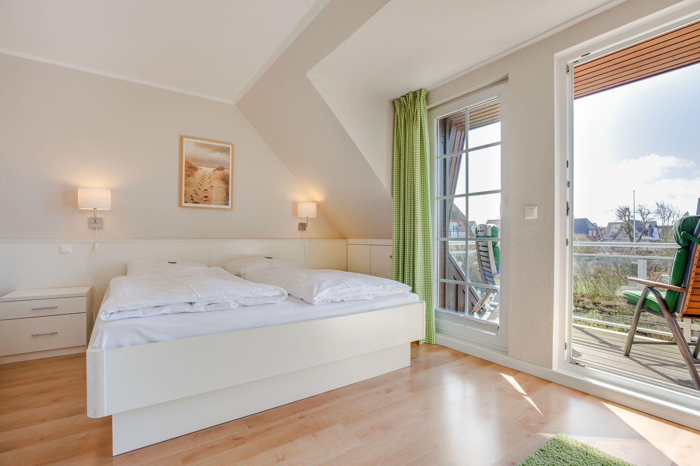 Obergeschoss: Schlafzimmer mit Doppelbett (180x200) und Südbalkon;