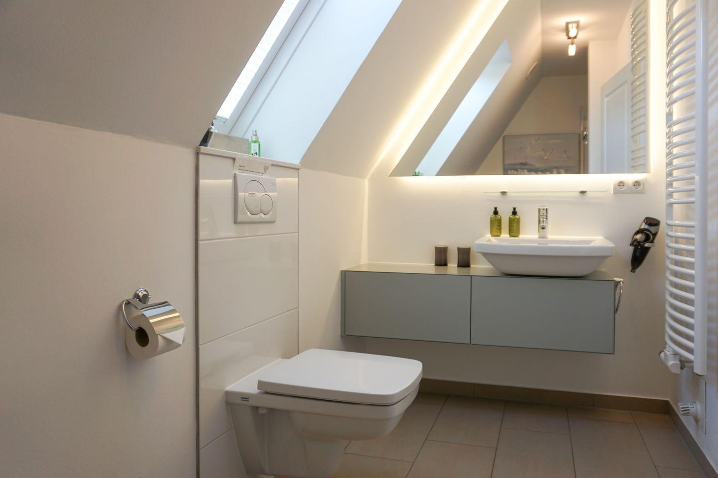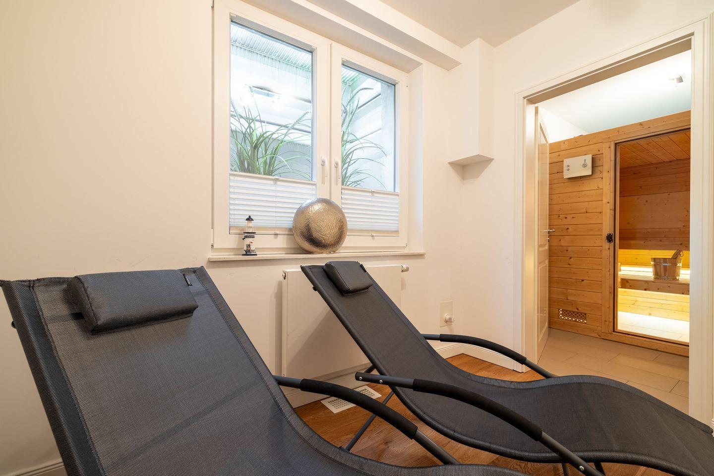 Ein eigener Saunabereich mit Ruhebereich lässt Sie durchatmen und Zeit für sich selber finden. Benachbart steht Ihnen ein weiteres, schönes Bad mit Dusche, Waschtisch und WC zur Verfügung.