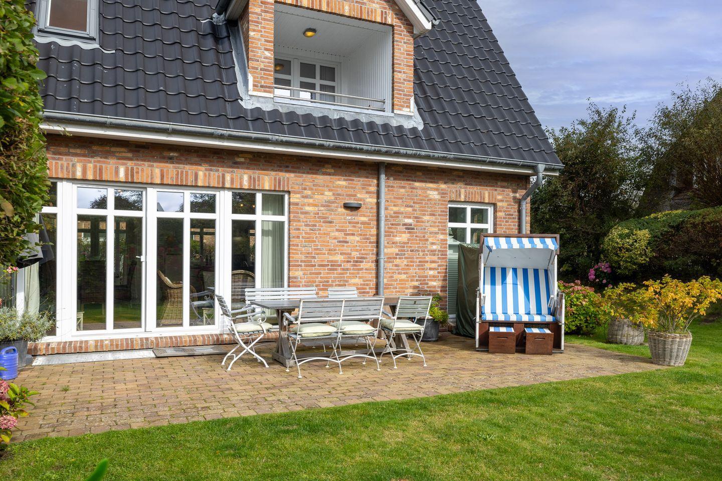 Warum bei schönem Wetter nicht draußen Frühstücken ? Ihre große Terrasse ist ein Traum und die Morgensonne zaubert Ihnen sogar Sonnenstrahlen auf Ihren Open Air Frühstückstisch. Wertiges Gartenmobiliar und Strandkorb stehen Ihnen natürlich ebenfalls zur Verfügung (ca. April-Oktober). Ihr eigenes, großzügiges Süd-/Ostgrundstück lässt Sie die Sylter Sonne ausgiebig genießen und Ihre Kids können nach Herzenslust Toben und Spielen.