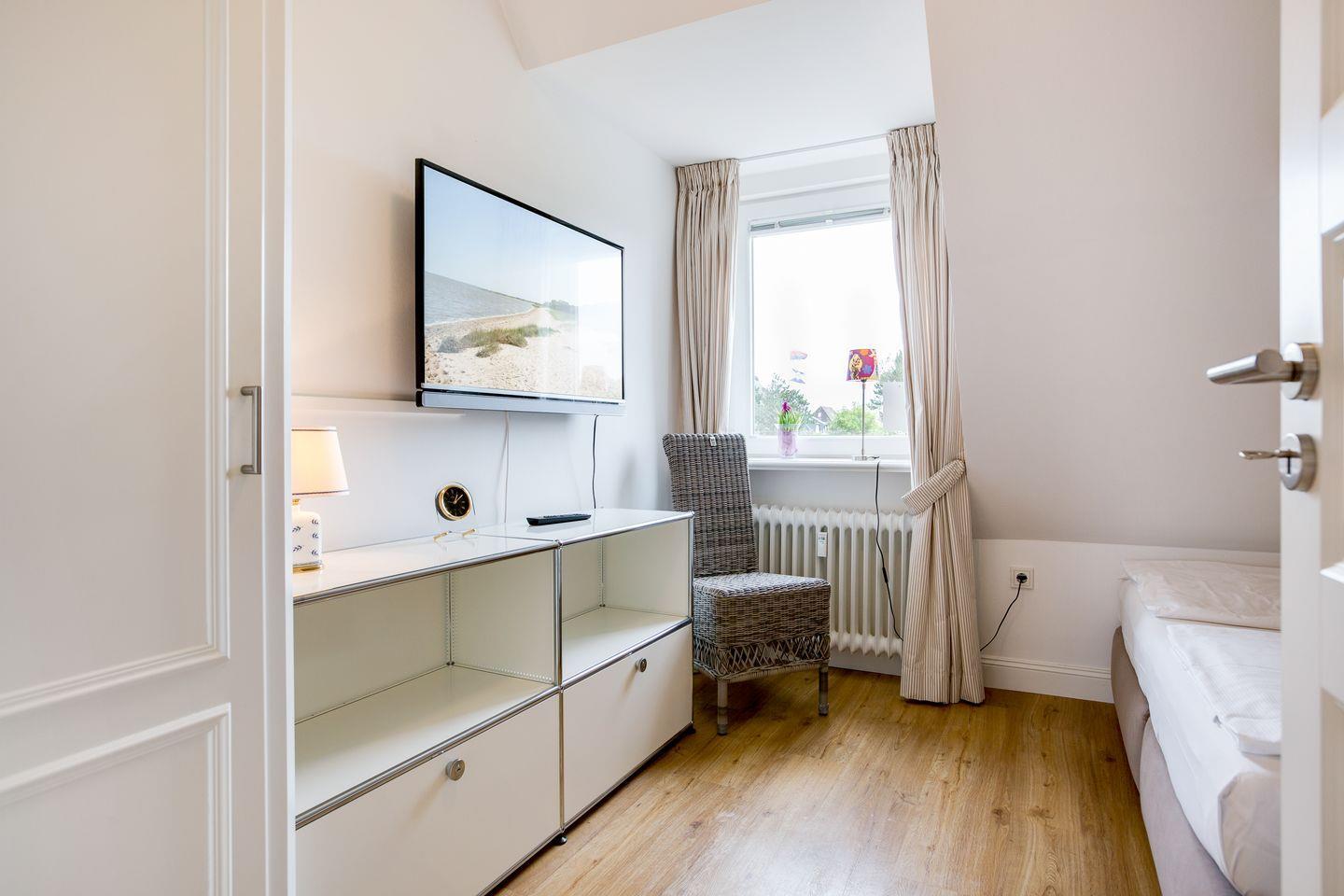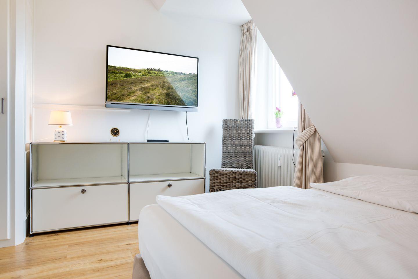 Sie öffnen Ihre Domiziltür und werden sofort begeistert sein: alles ist hell, modern und stylish gestaltet. Das Glastreppengeländer mutet beinahe schon avantgardistisch an. Ihr Bad: richtig schön mit großer Dusche und edlen Fliesen. Und auch die Lage wird Ihnen gefallen: nahezu zurückgezogen und ein wenig versteckt urlauben Sie ruhig, und doch sind es zu Strand, Restaurants und Einkaufsgelegenheiten jeweils nur wenige Schritte an der schönen Sylter Luft.