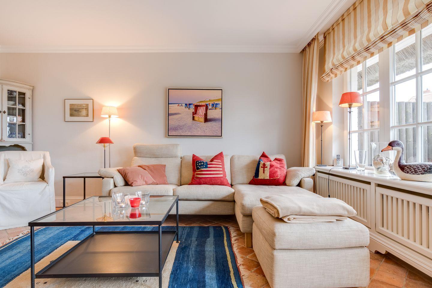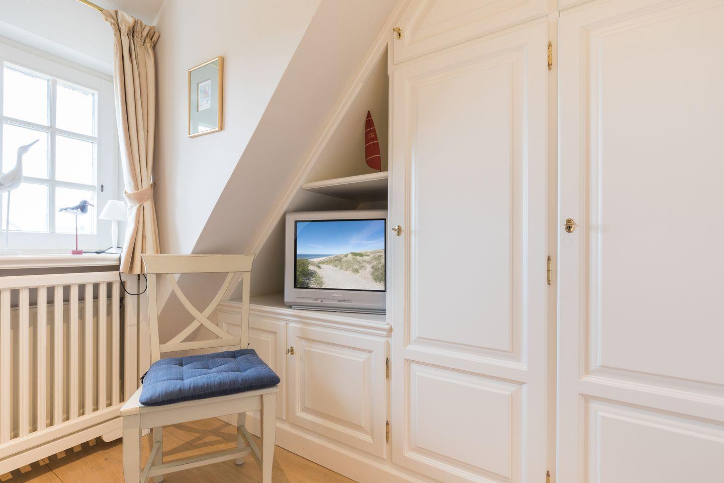 Wunderschöne Eichendielen, wohin das Auge auch fällt. Perfekte Tischlerarbeiten. Einmalige Lage, im Dachgeschoss sogar mit kleinem Meerblick. Eine gekonnte Melange aus kuscheligem Landhaus und Sylter Lifestyle.