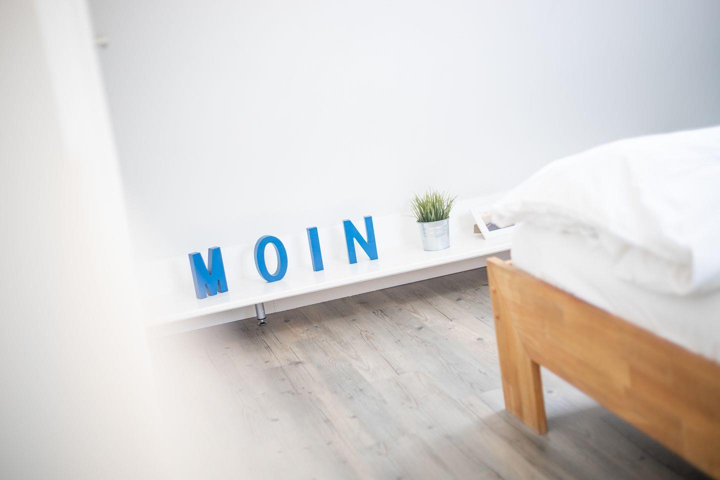 Der Wohnraum des Domizils hält für Sie eine gemütliche Couch, einen kleinen Essbereich und eine offen gestaltete Küchenzeile bereit. Sie finden hier eine Mikrowellen-Backofenkombi sowie einen Induktionsherd und sind somit für die Zubereitung Ihres Urlaubsdinners sehr gut gewappnet. Vom Wohnbereich aus betreten Sie ihren möblierten Balkon, auf dem Sie entspannt an der Nordseeluft die Seele baumeln lassen können. Auf gleicher Ebene befindet sich ein modernes Tageslichtbadezimmer mit Dusche und WC. Im Dachgeschoss der Wohnung finden Sie einen weiteren Raum mit Doppelbett (180x200) und Flatscreen-TV.
