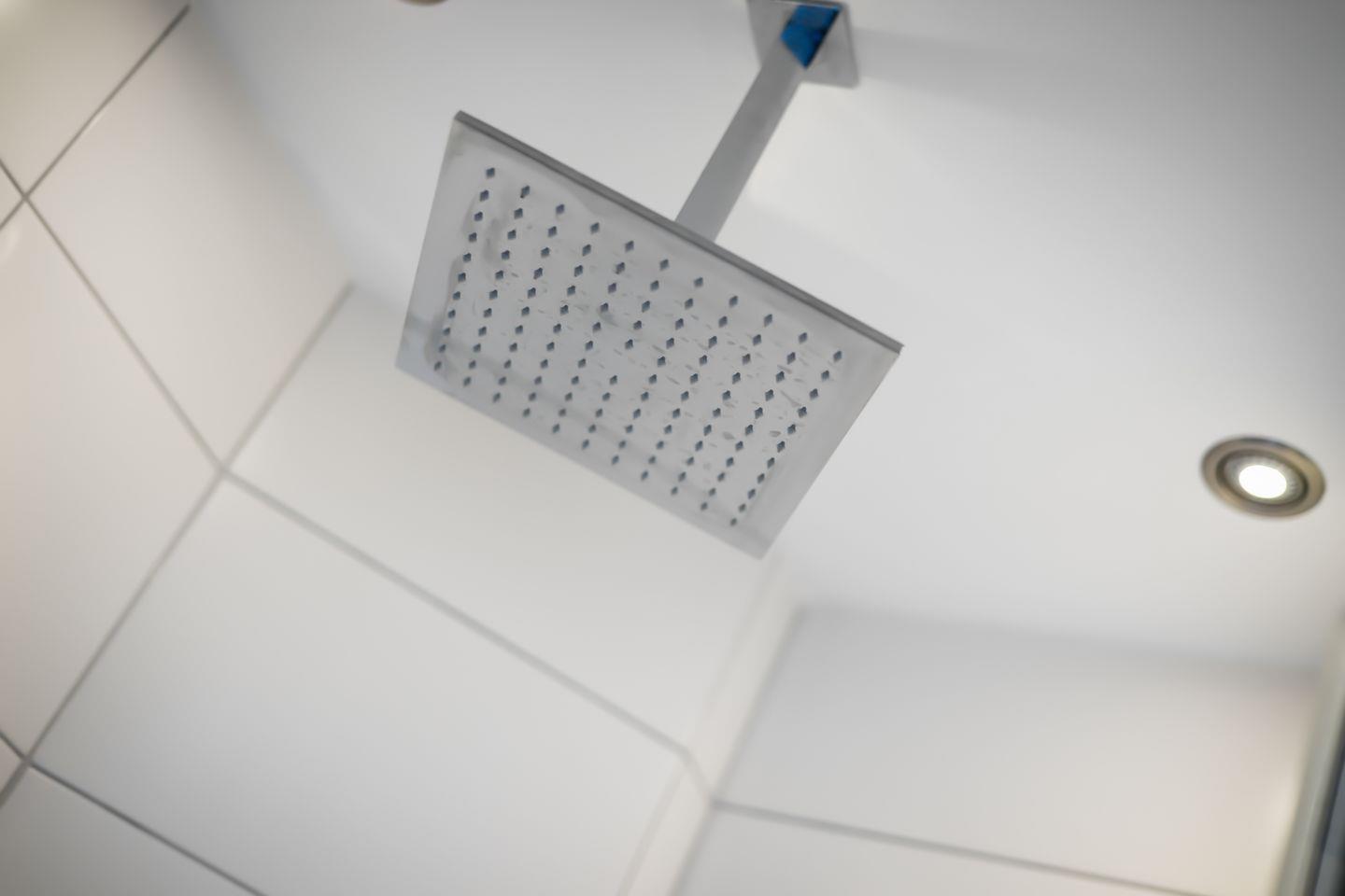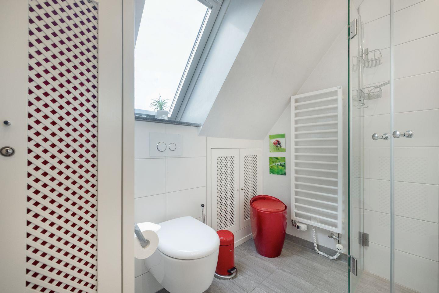 Ihr Bad ist eine kleine Wohlfühloase mit schöner Dusche samt Raindance Brause, WC und elegant gebauter Waschtischeinheit.