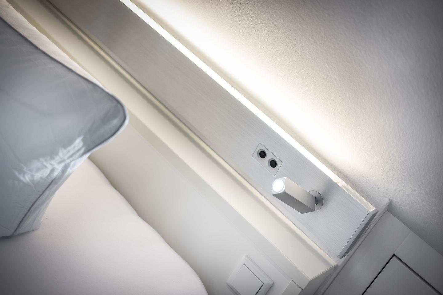 Richtig wohlfühlen werden Sie sich auch in Ihrem Schlafzimmer. Ein nettes Detail auch hier: Ihr kuscheliges Bett (180x200cm-getrennt) sorgt nicht nur für traumhaften Schlaf - Sie können auch aus unterschiedlichen Lichtszenarien wählen: Ambientes Licht durch LED's, die in Ihr Bettkopfteil eingearbeitet sind. An LED Lesespots für lange Leseabende wurde ebenso gedacht. Viel Schrankplatz versteht sich von selbst, nebst Flat-TV.
