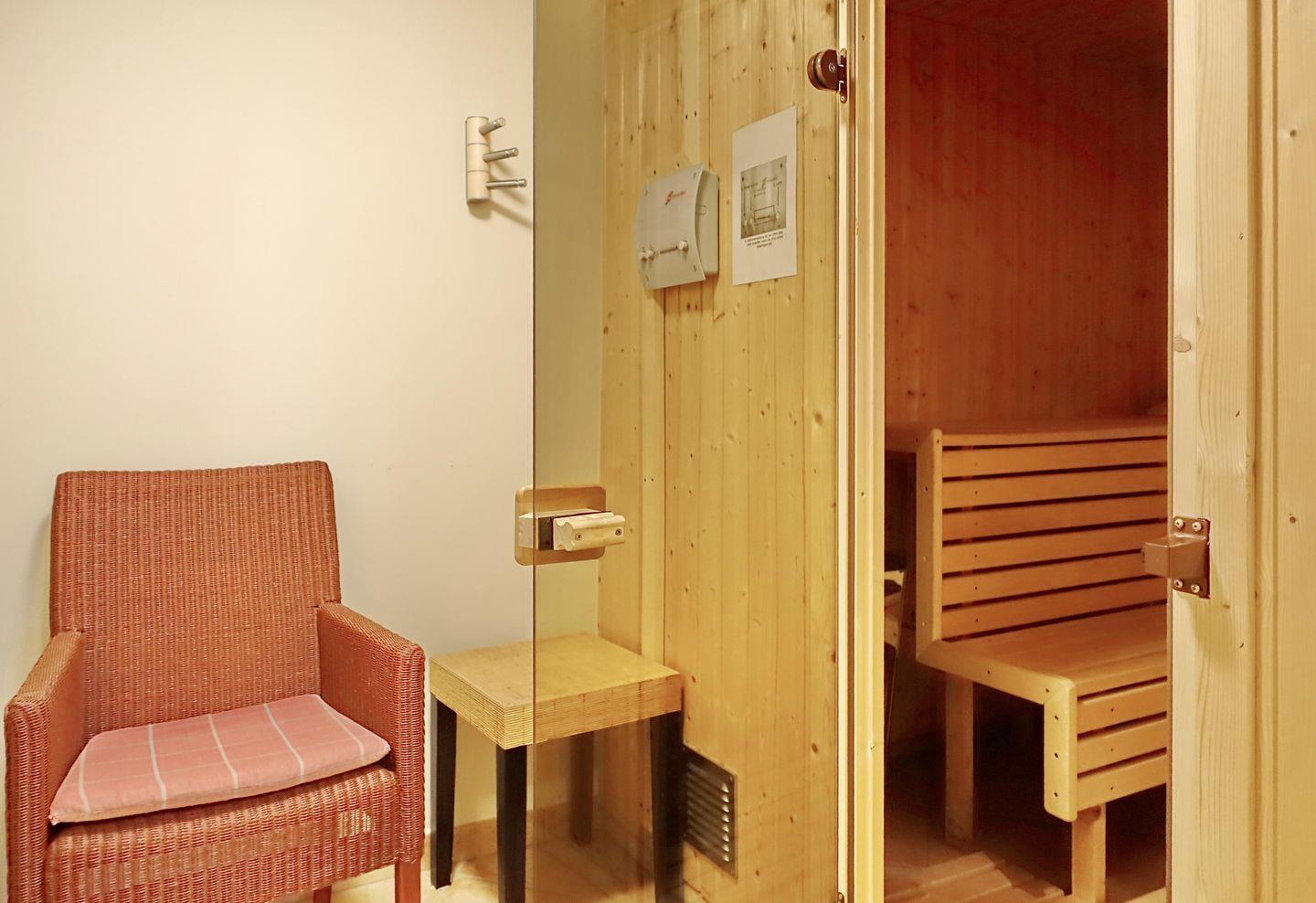 UG: Ein Raum mit Doppelbett (180x200cm durchgehend) und TV. Sauna.