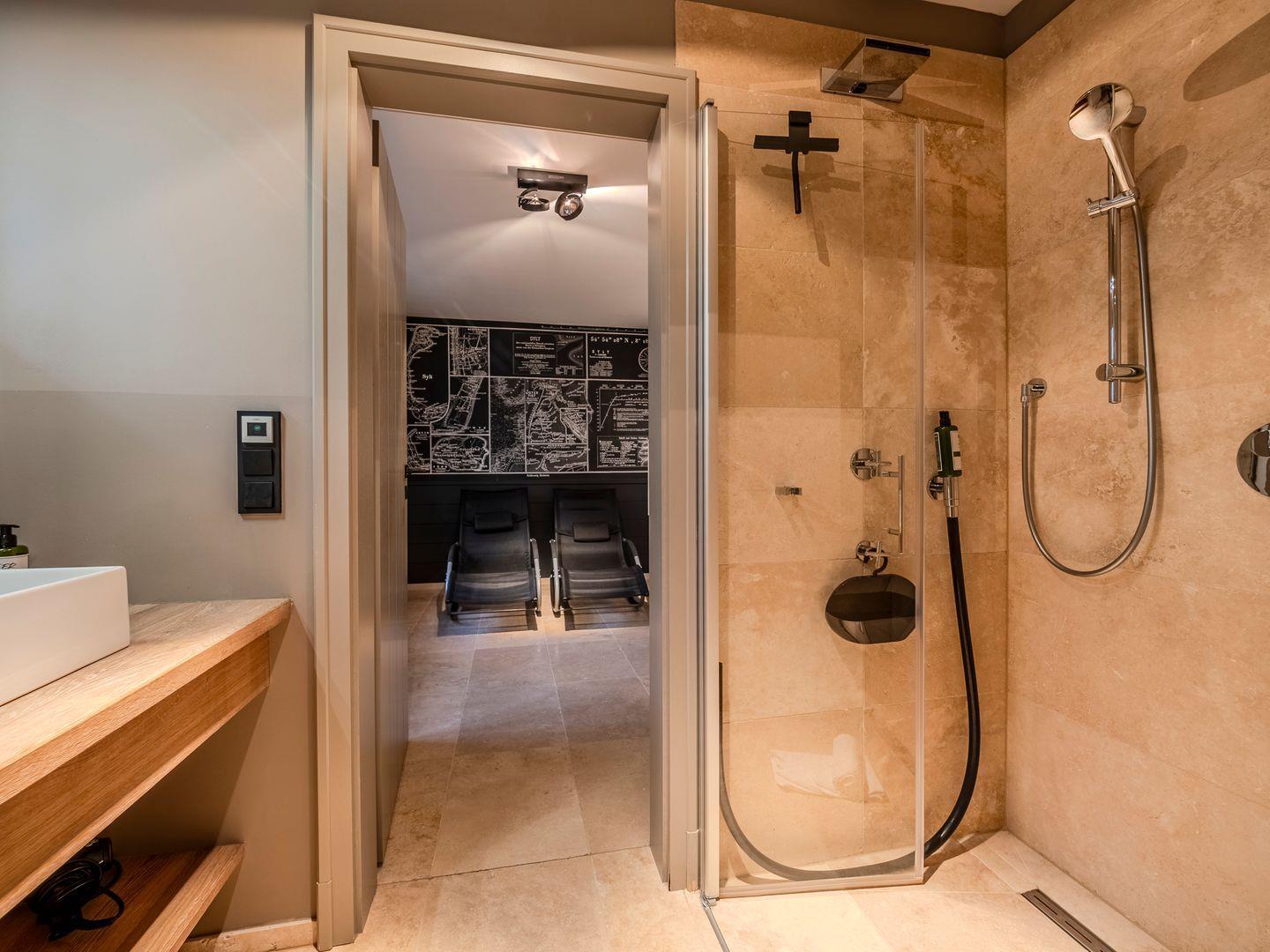 Großzügige Sauna mit schönem Ruhebereich und zwei Liegemöglichkeiten.