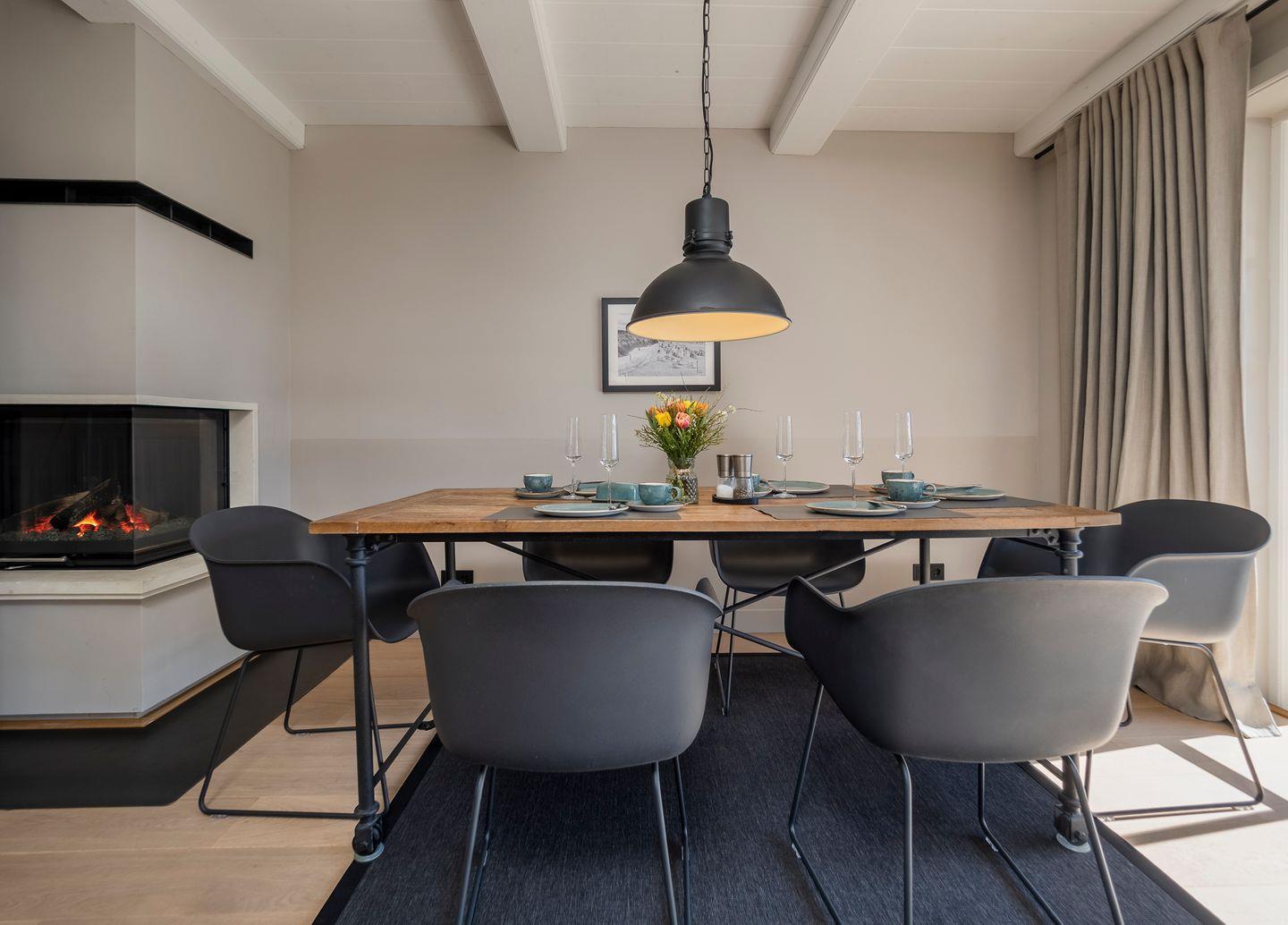 Im Erdgeschoss ist vom Flur aus die geschlossene Küche mit kleinem Essbereich und das separate Wohn- und Esszimmer begehbar. Die moderne und hochwertig ausgestattete Küche lässt mit Induktionsherd und integrierter Dunstabzugshaube, Mikrowelle mit Backofen-Funktion, Weinkühlschrank, Nespresso-Kapselmaschine und SodaStream Wassersprudler keine Wünsche offen. Ein gemütlicher Wohnraum mit freiem Blick in den Garten verfügt über einen Sofa- und Essbereich, die mit Kamin und TV zum Verweilen einladen.