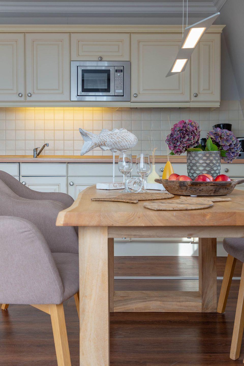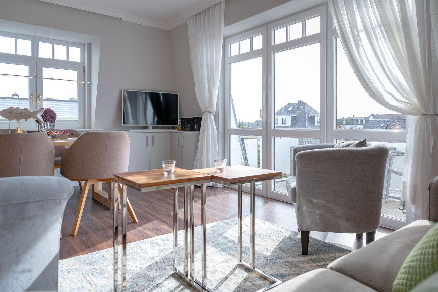 Es erwartet Sie ein exquisites, sehr modernes Design in heller Atmosphäre, in grauen und cremefarbenen Tönen gehalten, mit ganz viel Liebe zum Detail gestaltet. Dieses Urlaubsdomizil ist lichtdurchflutet, und der Blick durch die Fenster präsentiert schöne Ausblicke. In diesem vorzüglichen Ambiente zu wohnen, bedeutet Urlaub von Anfang an!