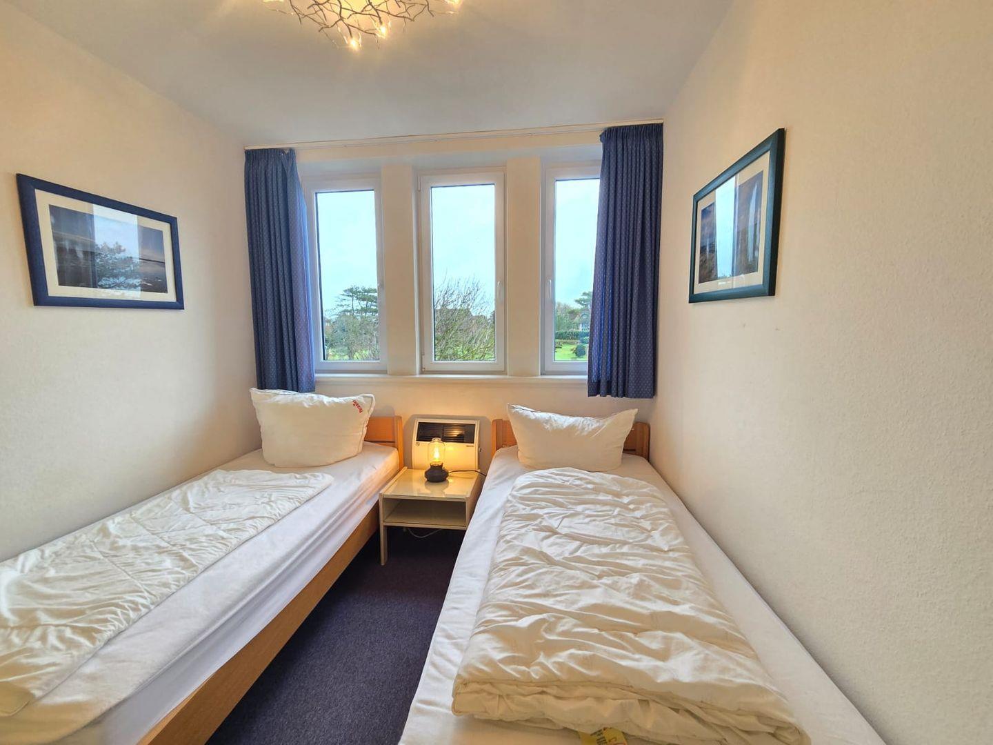 Die beiden Schlafzimmer sind elegant eingerichtet und verfügen jeweils über zwei komfortable Einzelbetten. Die ruhige Lage der Zimmer und die hochwertigen Matratzen garantieren erholsamen Schlaf und einen frischen Start in den Tag. Das Badezimmer ist modern gestaltet und verfügt über eine Dusche, ein Waschbecken sowie einen stilvollen Spielgelschrank.