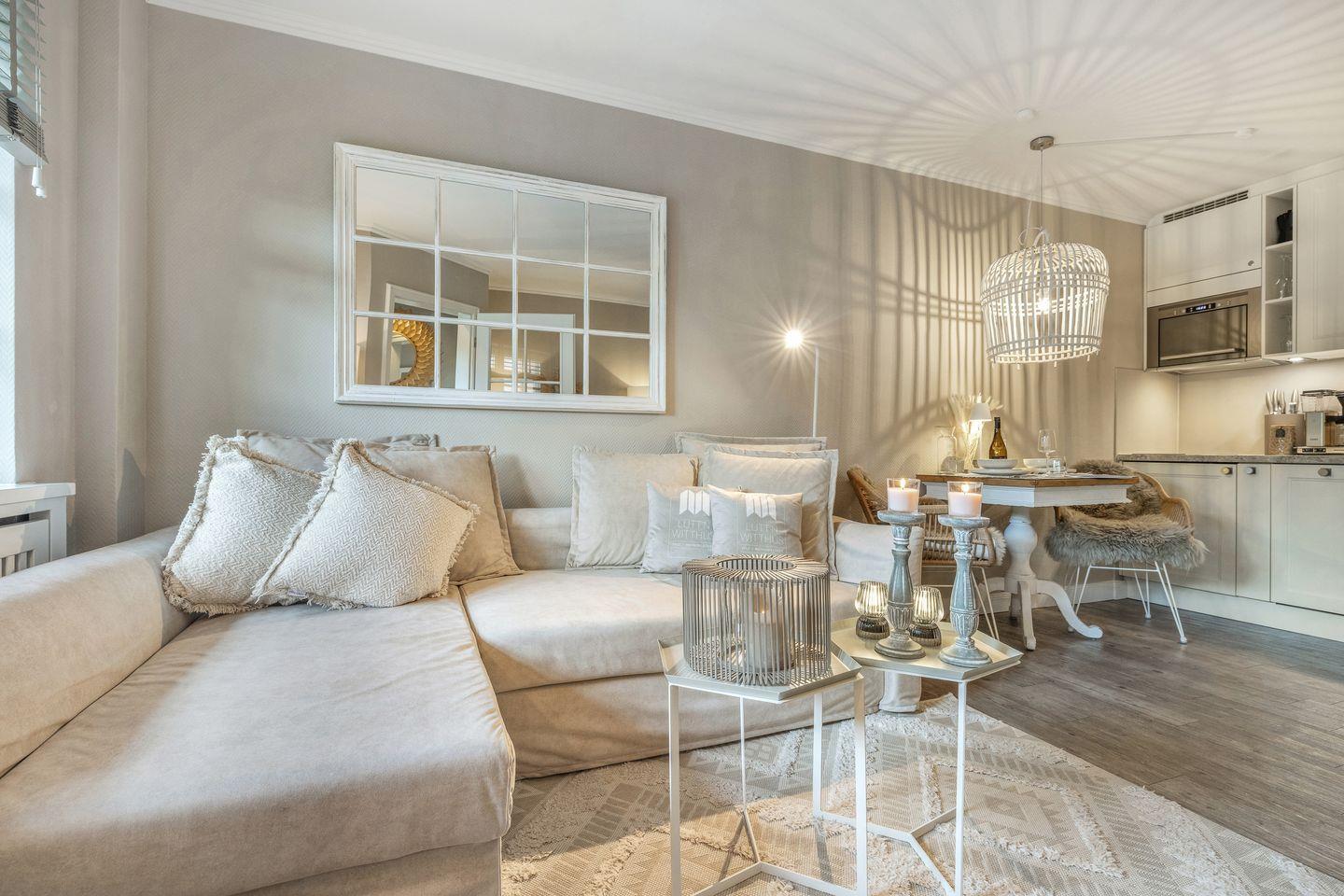 Die Wohnung mit einer Fläche von 47 m² ist ideal für Paare und verfügt über einen offenen Wohnbereich, der mit einer modernen Küche, einem Esstisch und einem gemütlichen Sofa ausgestattet ist. Für Ihre Unterhaltung sorgen nicht nur zwei Fernseher mit digitalem Anschluss, sondern auch kostenloses WLAN, welches in der gesamten Wohnung zur Verfügung steht. Die Küche ist komplett ausgestattet mit hochwertigen Küchenutensilien, einer Geschirrspülmaschine sowie einer Nespresso-Espressomaschine, sodass Sie sich auch in Ihrem Urlaub kulinarisch verwöhnen können.
