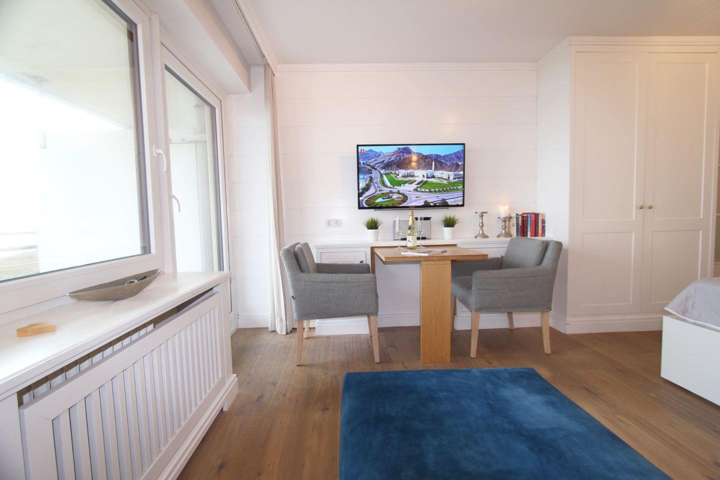Neu eingerichtete Ein-Raum-Ferienwohnung in einem Ferienkomplex in direkter Strandlage. Der traumhafte Meerblick macht diese Ferienwohnung ideal für einen unvergesslichen Sylt-Urlaub.