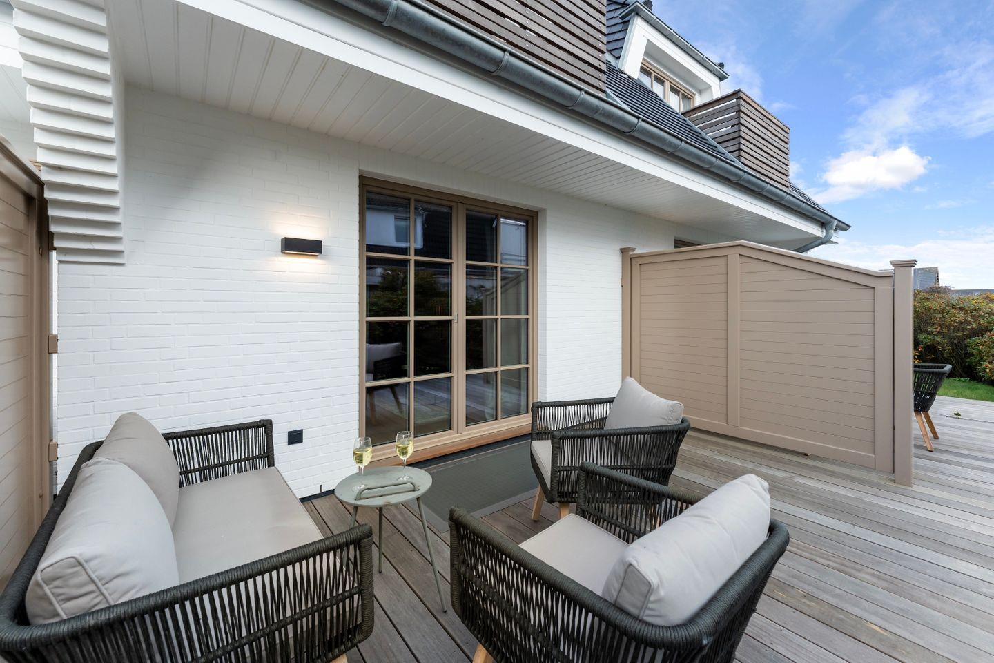 Die möblierte Terrasse in Südausrichtung lädt dazu ein, die Sonnenstunden in vollen Zügen zu genießen – sei es beim morgendlichen Kaffee oder einem Glas Wein in der Abendsonne.