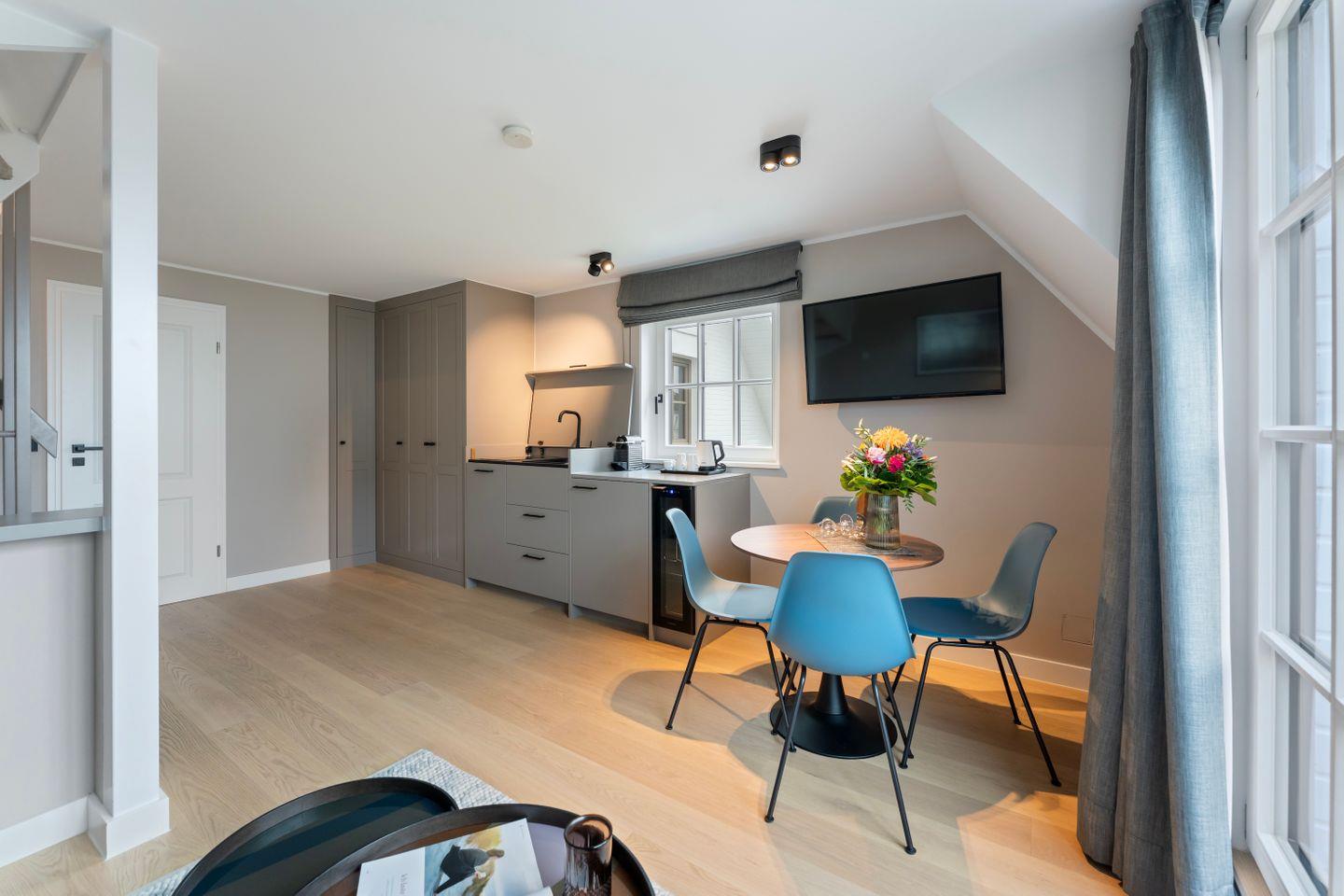 Die offene Pantry-Küche ist perfekt ausgestattet für kleine kulinarische Auszeiten. Ein Induktionskochfeld, Weinkühlschrank, Kühlschrank mit Gefrierfach, Geschirrspüler und eine Nespresso-Maschine stehen bereit – ob für ein schnelles Frühstück oder einen selbst zubereiteten Snack am Abend.