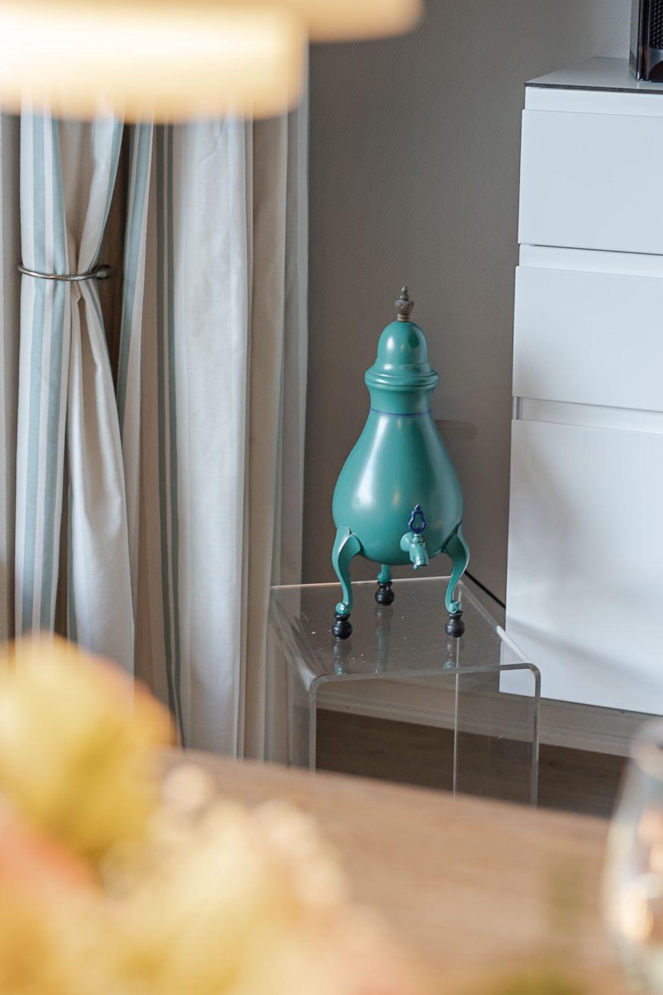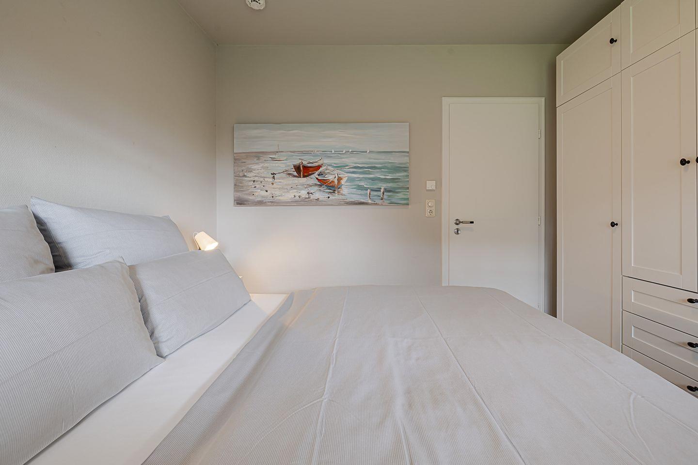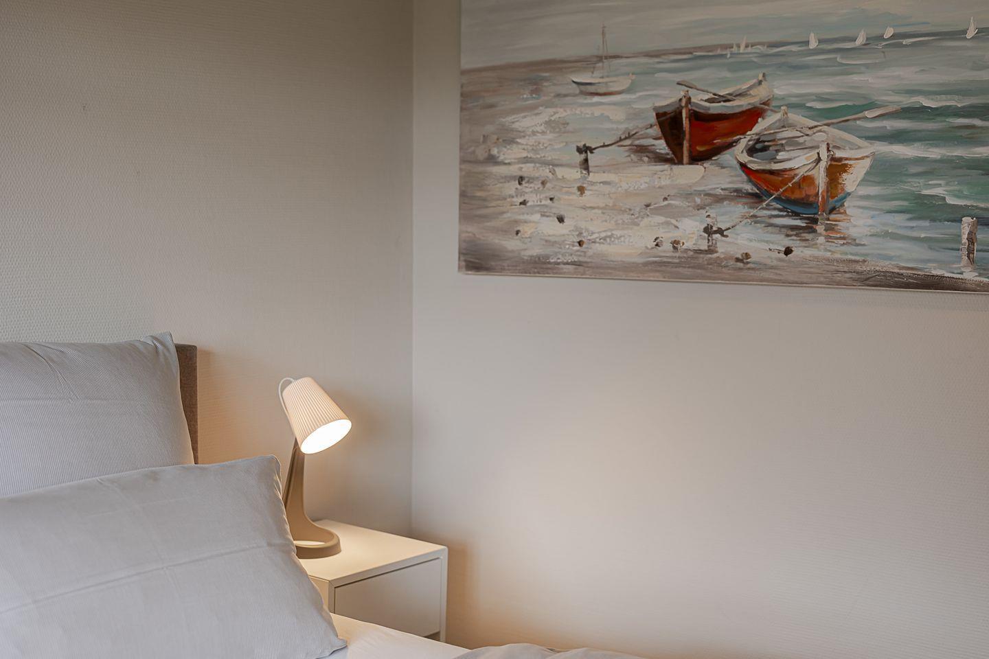 Im Erdgeschoss befindet sich ein liebevoll gestaltetes Schlafzimmer mit einem komfortablen Doppelbett (1,60 × 2,00 m). Das Zimmer ist hell, ruhig und mit einem geräumigen Kleiderschrank sowie einem großen Ganzkörperspiegel ausgestattet – ideal, um sich auch im Urlaub rundum wohlzufühlen.