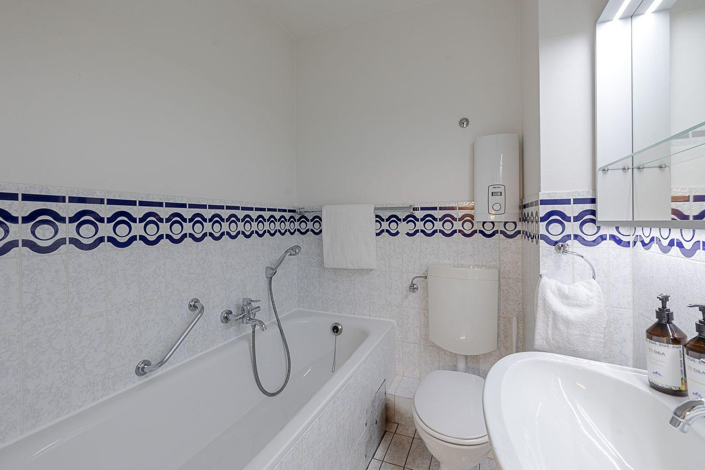 Für zusätzlichen Komfort sorgen zwei Badezimmer: im Erdgeschoss mit Badewanne, im unteren Bereich mit Dusche – beide ohne Fenster, aber gepflegt und vollständig ausgestattet. Eine Waschmaschine steht Ihnen ebenfalls zur Verfügung.