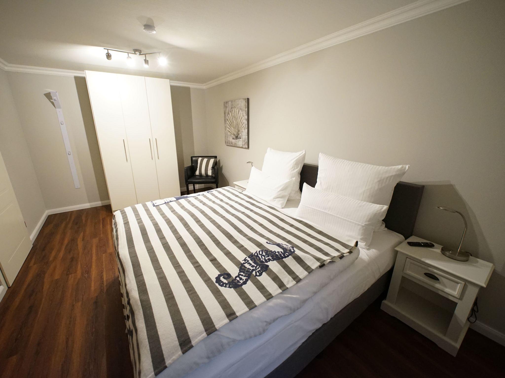 The interior of the flat leaves nothing to be desired. A washing machine and tumble dryer are available for communal use in the building, which is particularly practical for longer stays. The kitchen boasts a ceramic hob, a coffee machine for pods as well as a kettle and a dishwasher, so you are well equipped to prepare delicious meals for yourself and your loved ones. The living area includes cosy seating, a sofa bed, a TV and a CD player to guarantee relaxing evenings.
