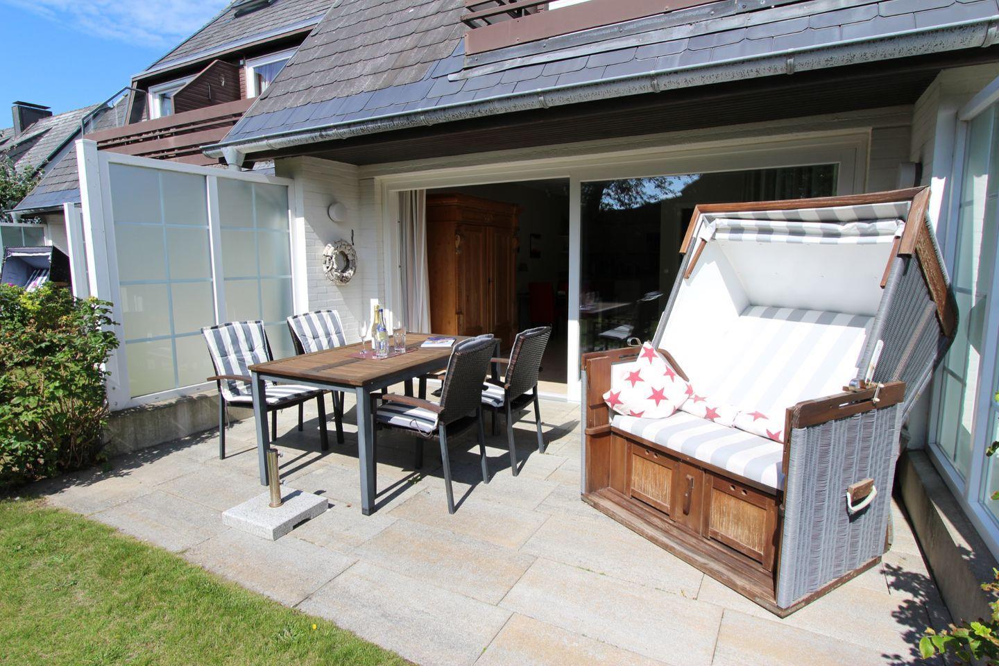 Auf der sonnengefluteten Süd-Terrasse mit eigenem Strandkorb (April bis Oktober) können Sie optimal ausspannen und die Sorgen des Alltags hinter Ihnen lassen.