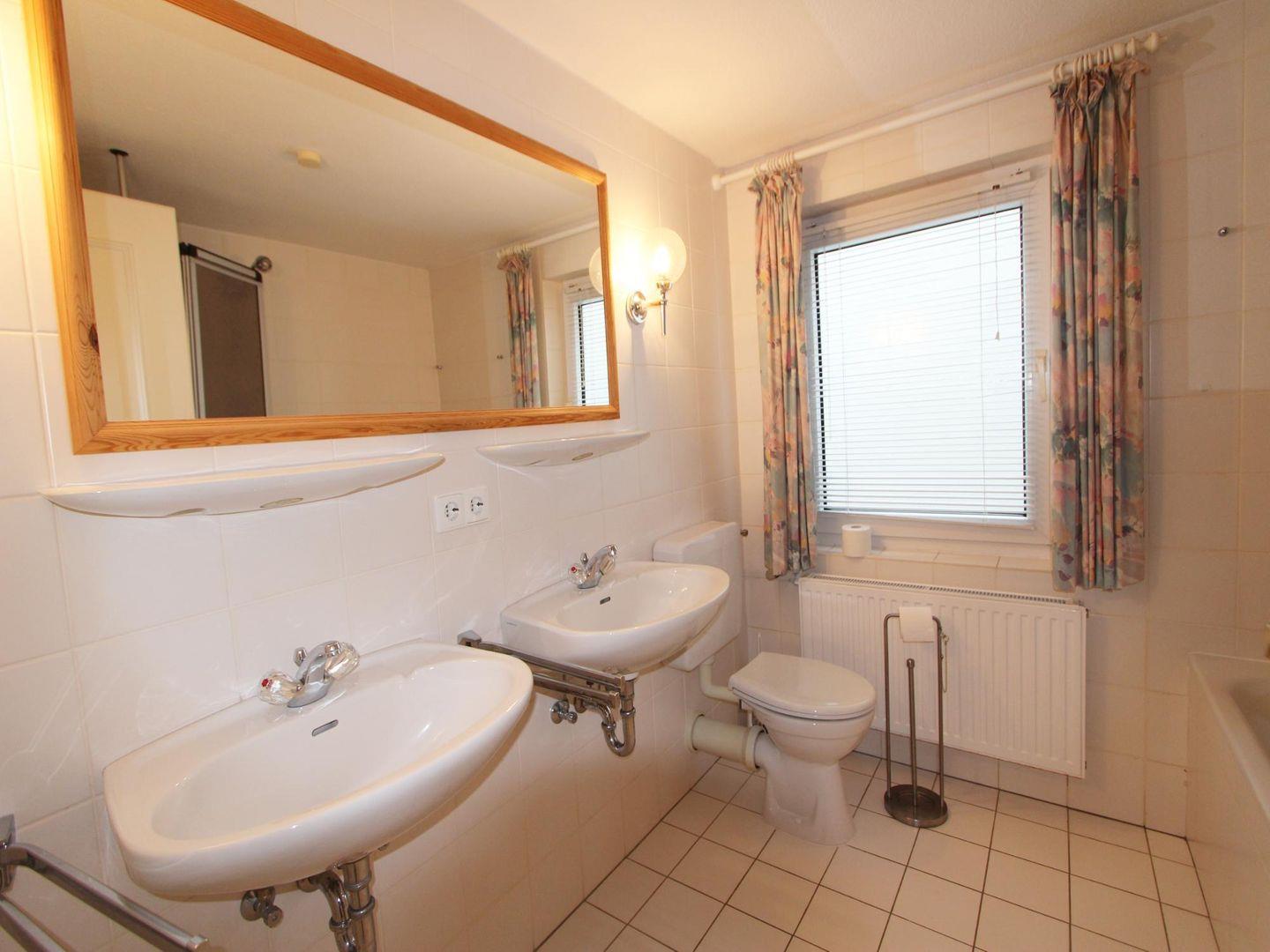 Insgesamt nutzen Sie in diesem Hausteil ein Duschbad/WC im Obergeschoss und ein Wannenbad im Untergeschoss. Zudem steht Ihnen im Erdgeschoss ein Gäste-WC zur Verfügung. Zudem befinden sich eine Waschmaschine im Appartement.