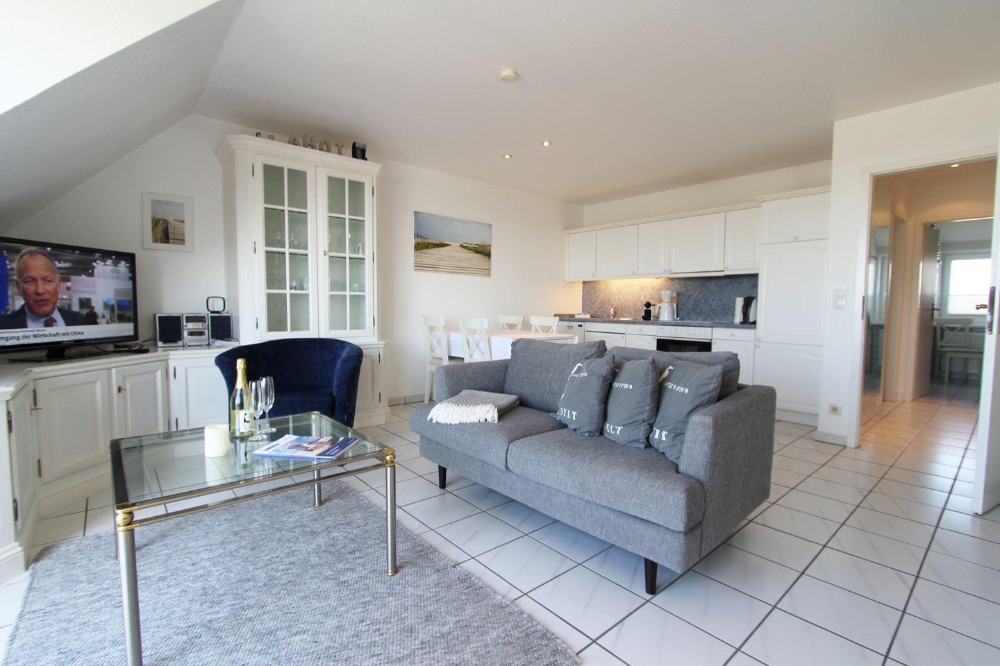 Helle und modern eingerichtete Ferienwohnung auf zwei Ebenen in direkter Strandlage. Für maximalen Verwöhnfaktor sorgen voller Meerblick, West-Balkon und die zentrale Lage. Perfekt für den Familienurlaub.