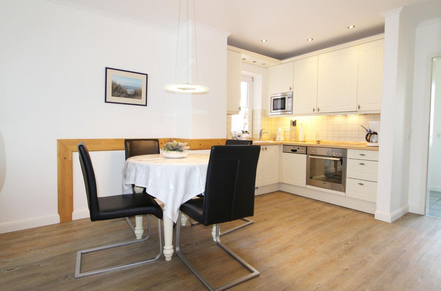 Der Essbereich befindet sich im großen Wohnraum im Erdgeschoss und bietet Platz für vier Personen. Die offene Küche bietet ausreichend Platz und Arbeitsflächen, um gemeinsam zu kochen.