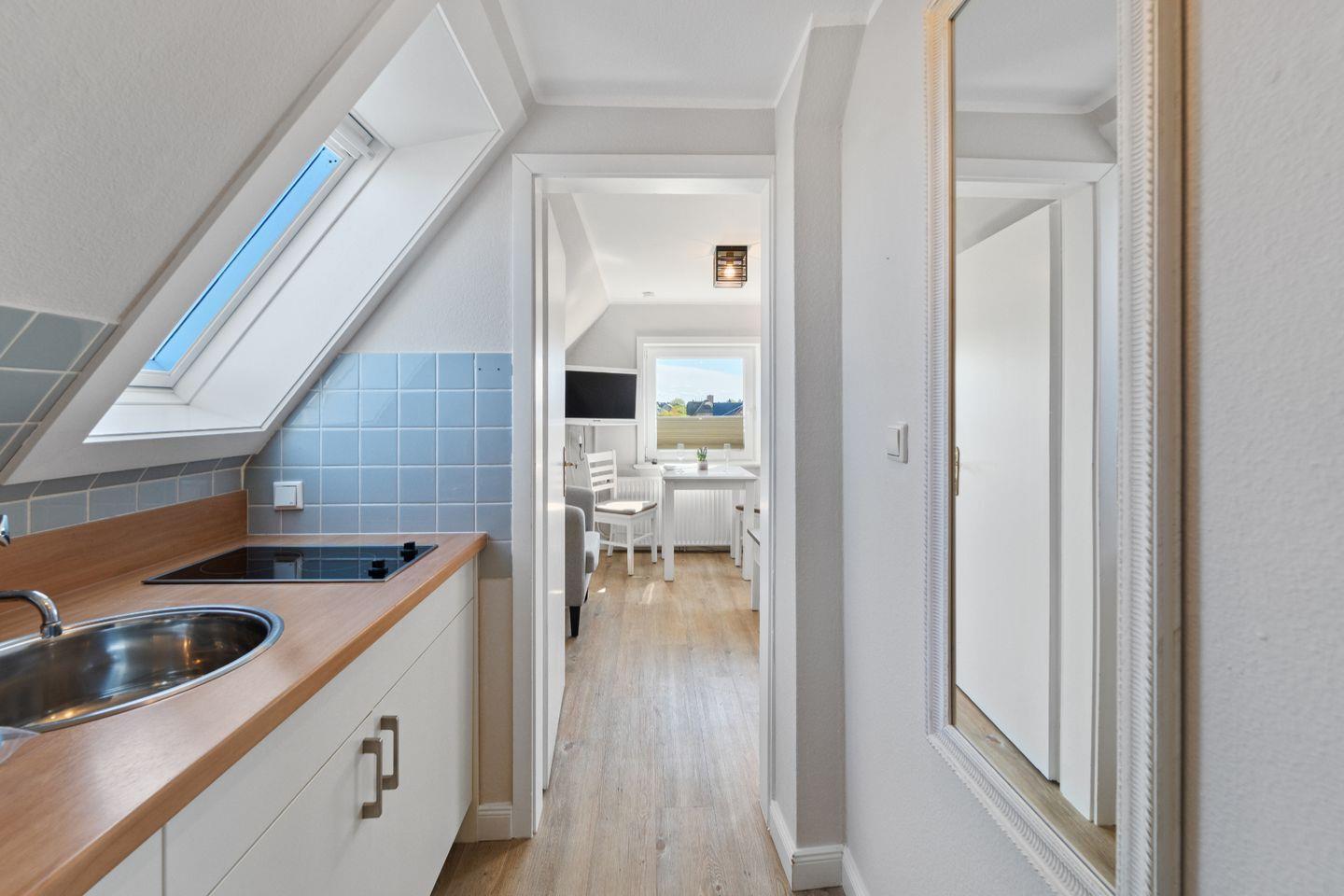 Das Dachfenster in der Küchenzeile ermöglicht Ihnen, kleinere Speisen mit Blick auf Wenningstedt zuzubereiten. Am hellen Essensplatz können Sie schon beim Frühstück die ersten Sonnenstrahlen des Urlaubstages genießen.