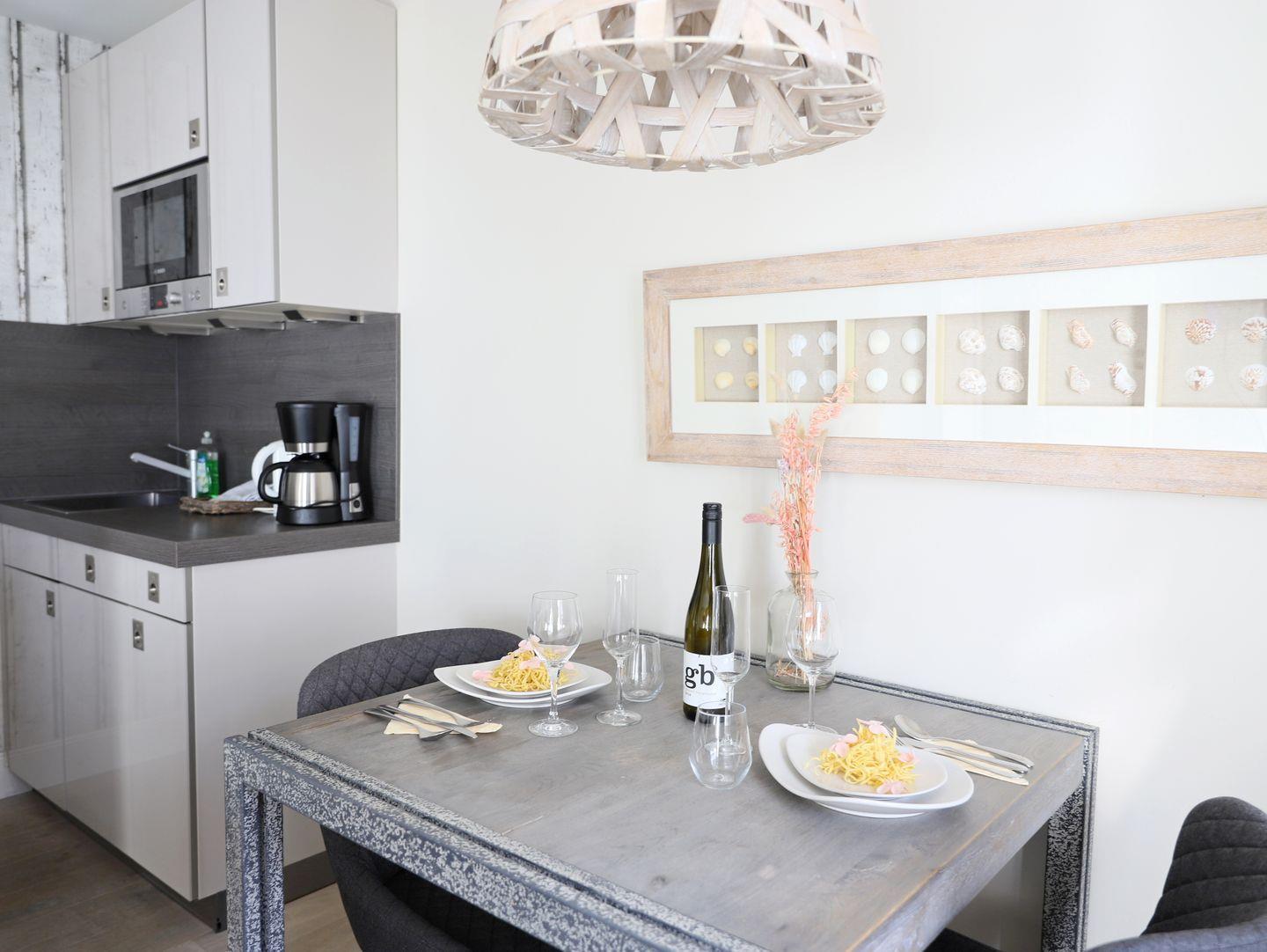 Genießen Sie Ihren Urlaub in dieser elegant eingerichteten Wohnung in Wenningstedt. Nur wenige Gehminuten zum Strand und Dorfteich entfernt, bietet die Unterkunft einen Süd-Balkon, ein Schlafzimmer mit Doppelbett, und einen komfortablen Wohnbereich mit Schlafsofa. Ein Parkplatz ist inklusive.