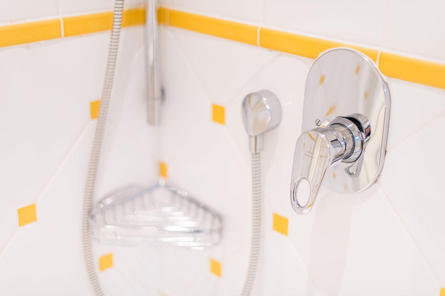 Das Badezimmer ist modern gestaltet und mit einer Dusche, einem WC, einem Handtuchwärmer, einem Föhn und Tageslicht ausgestattet.