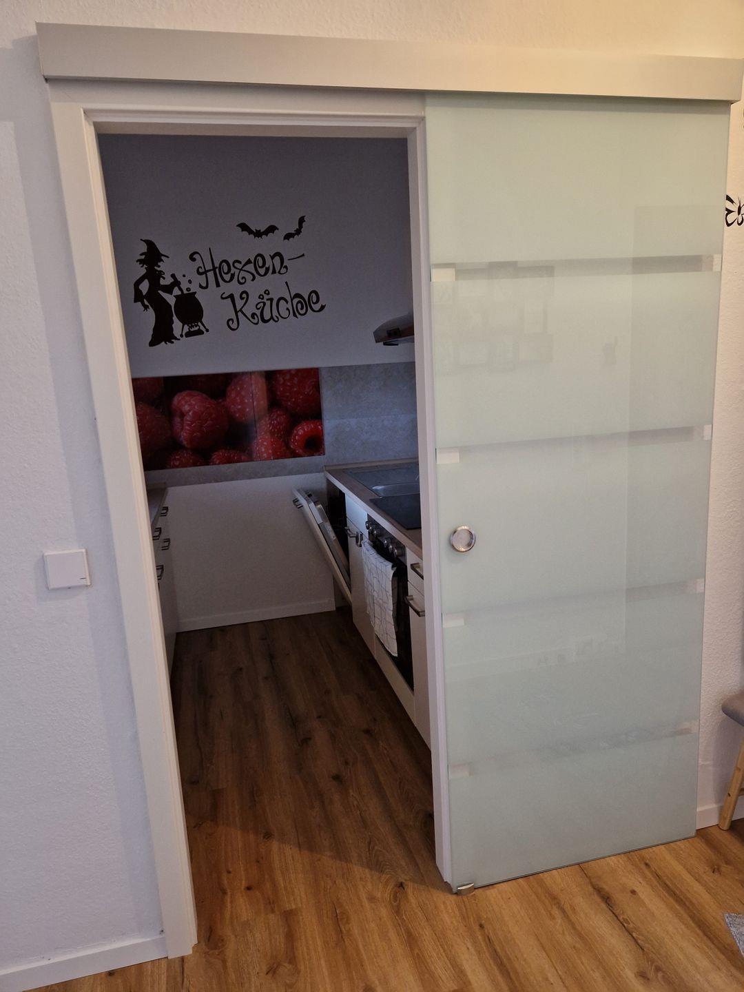Die komplett ausgestattete Küche verfügt über einem Geschirrspüler, einem Ceranfeld und einem Backofen.