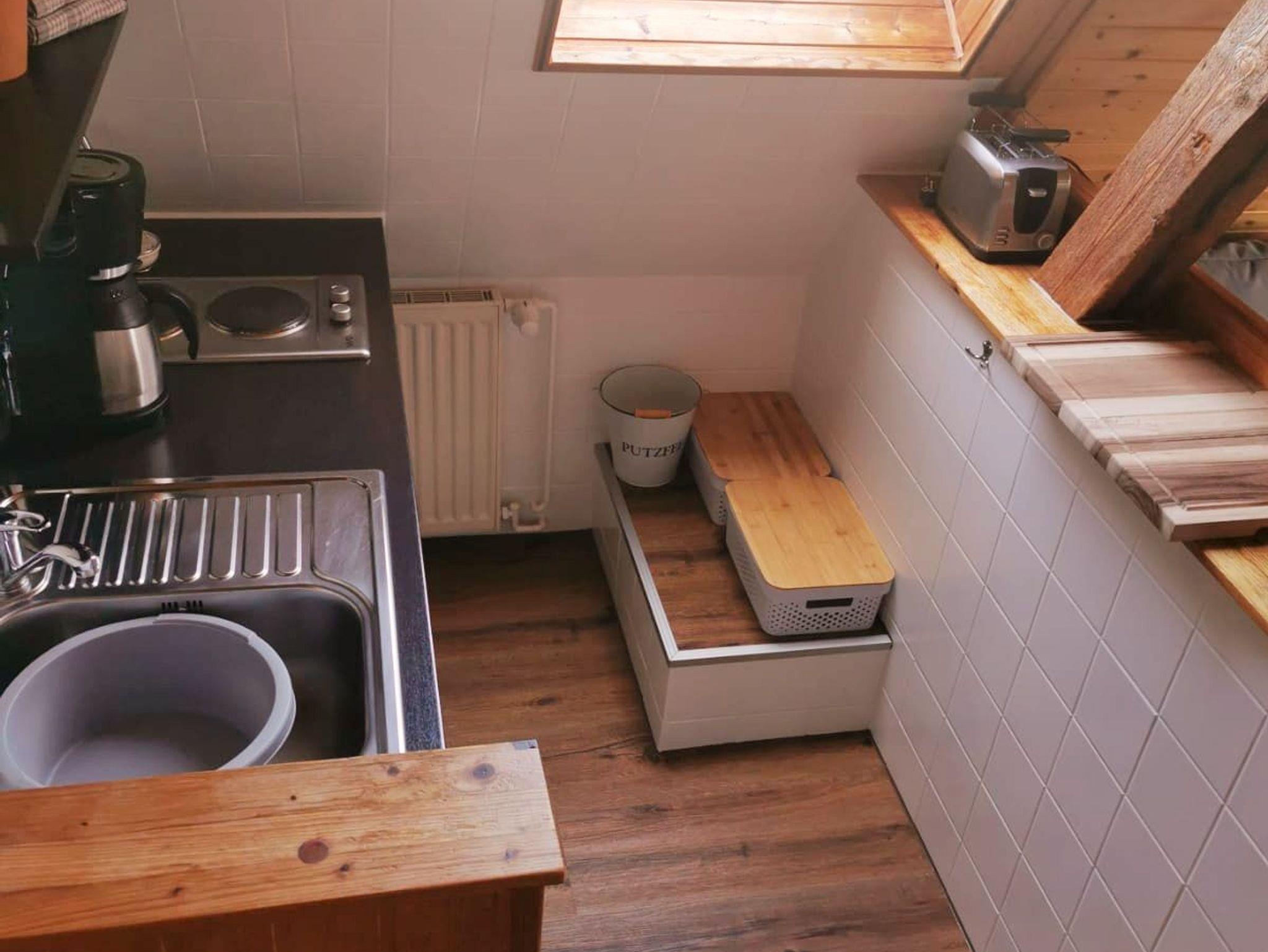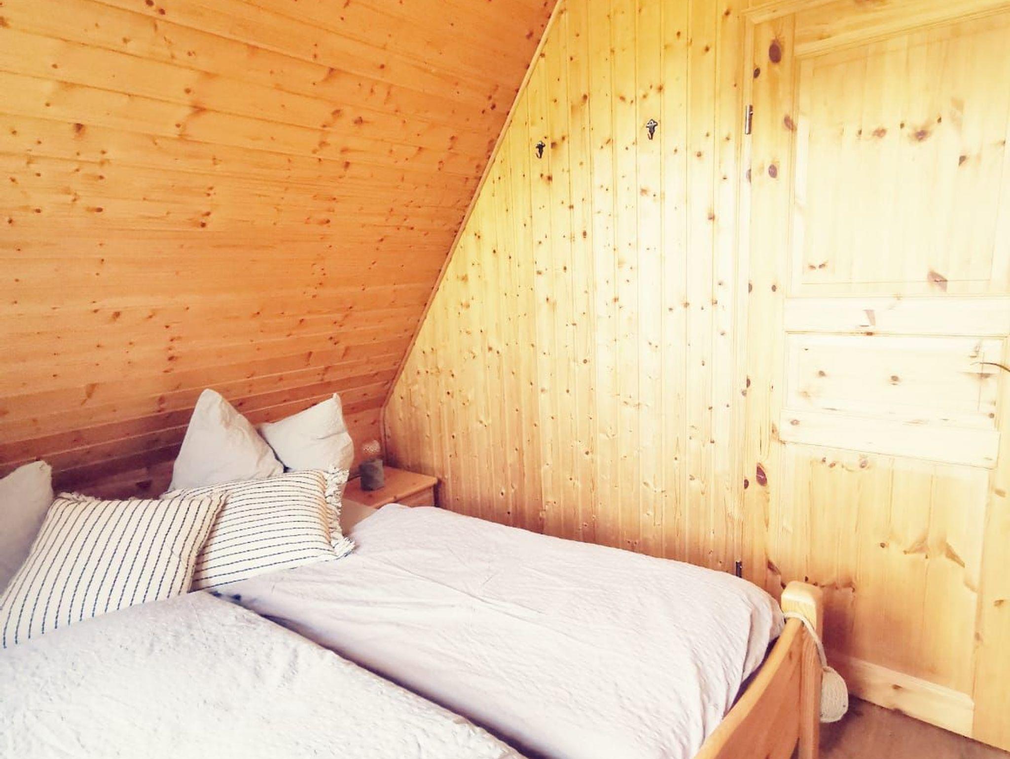 Die gemütliche Ferienwohnung Mond erstreckt sich über 2 Etagen und ist mit einem kombinierten Wohn-Essbereich, einer kleinen Küche sowie ein Bad mit Dusche und WC im unteren Teil sowie 2 separaten Schlafräumen (1x Doppelbett, 1x zwei getrennt stehende Einzelbetten) im oberen Teil ausgestattet.