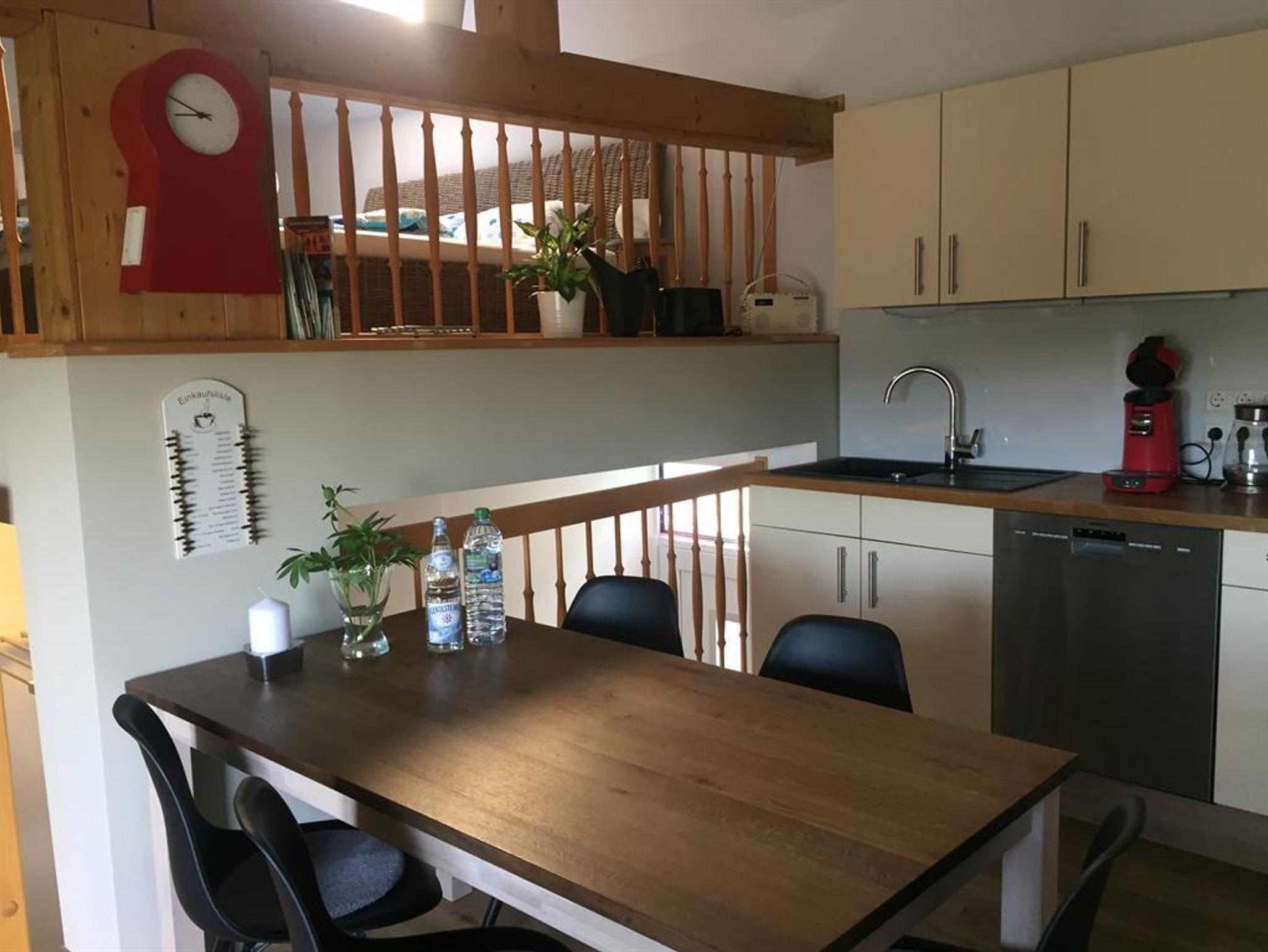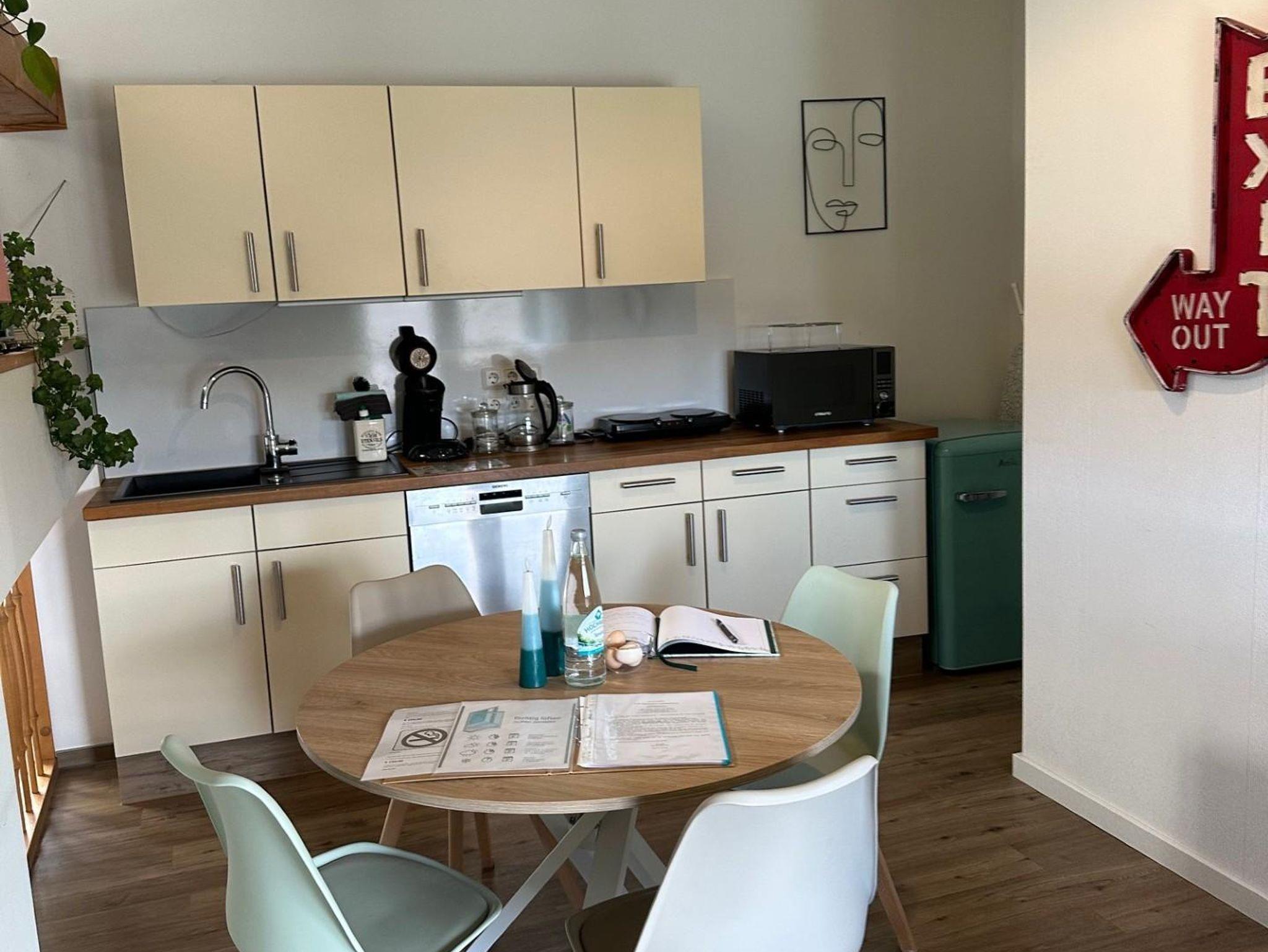 Das hübsche Haus ist von ca. 1930 und wurde in den letzten 6 Jahren von uns von Dach bis Garten umgestylt. Das Appartement Westerburg ist im Frühjahr 2018 fertiggestellt worden und in 2024 mit 3 Sternen vom DTV klassifiziert worden. Die Ferienwohnung befindet sich in dem Großteil der ehemaligen Scheune, nun eine wunderschöne, exklusive, offene Ferienwohnung von 55qm mit kleinem französischem Balkon, Blick in die Sterne vom Bett aus (Verdunklungsrollo im Dachfenster) und top ausgestatteter Küche. Im begrünten Hof können Sie Sommertage auch draußen sitzen. Es befindet sich für Sie eine kleine Sitzgelegenheit, welche gerade von den Rauchern gerne genutzt wird. Ein kostenfreier eigener Parkplatz steht für Sie 4 Häuser weiter bereit. Be- und Entladen an der Ferienwohnung ist kein Problem. Der Weg in die Stadt zu verschiedenen Restaurants, Bistro's, Kebab und Pizzahäusern, Apotheken, Banken, etc. ist gerade mal ein paar hundert Meter. Supermärkte sind auch nicht weit, am Rande der Kleinstadt. Tolle Aussicht und ruhige Lage nach hinten und auch nachts zur Strasse finden Sie hier vor. WLAN natürlich inklusive.