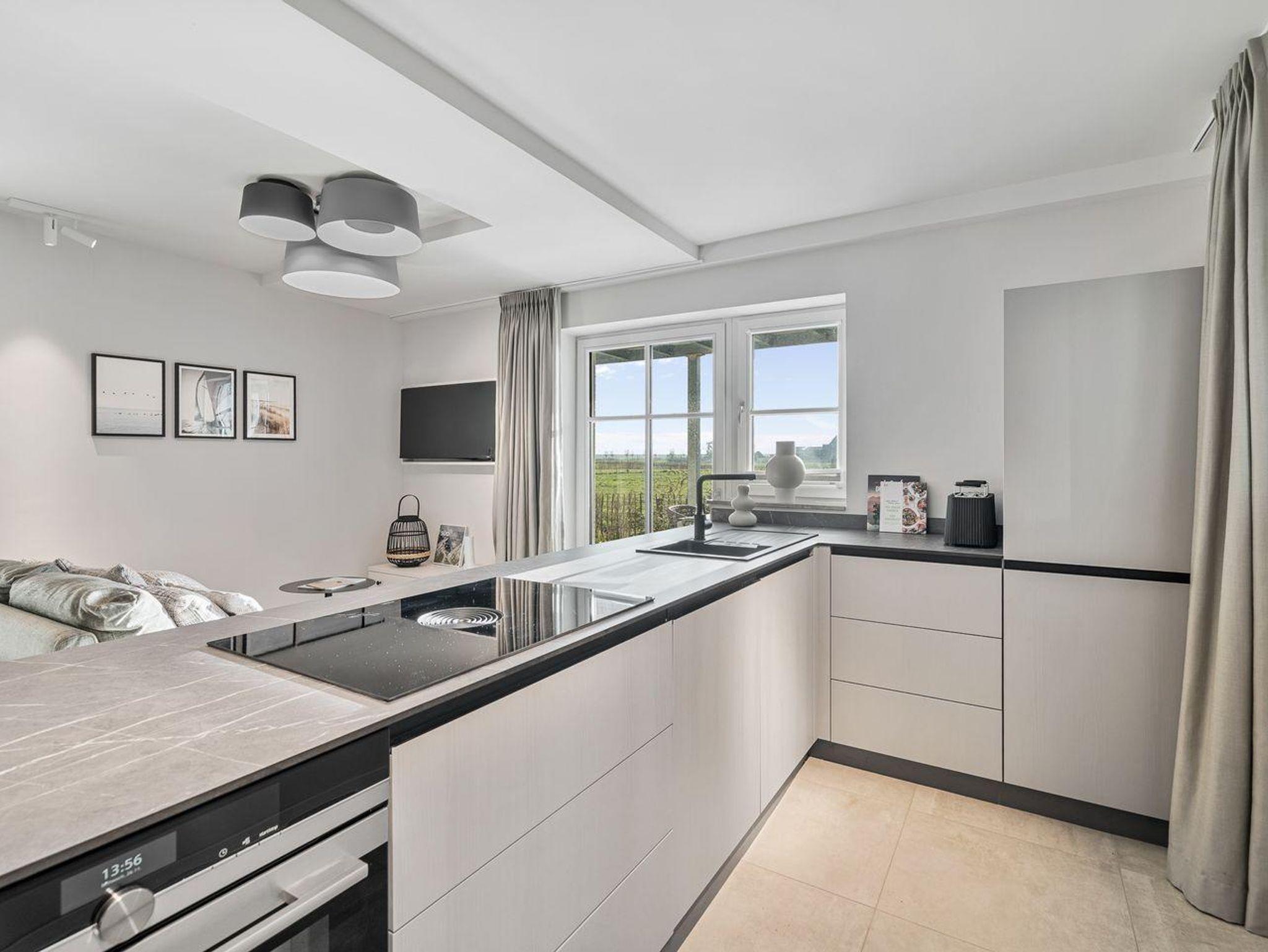 Die offene und exklusive Küche ist komplett ausgestattet und ideal für alle, die gerne selbst kochen. Hier finden Sie alle notwendigen Küchenutensilien sowie Hochwertige E-Geräte wie einen Induktionsherd, einen Backofen, eine Spülmaschine, eine Kaffeemaschine um Ihren Morgen mit einer Tasse frisch gebrühten Kaffee zu beginnen. Der eingerichtet Wohnbereich ist hell und exklusiv gestaltet und verbindet sich harmonisch mit der Küche. Gemütliche Abende können Sie beim Fernsehen verbringen; die Ferienwohnung ist mit zwei TV-Geräten ausgestattet, sodass Sie Ihre Lieblingssendungen in beiden Bereichen genießen können.