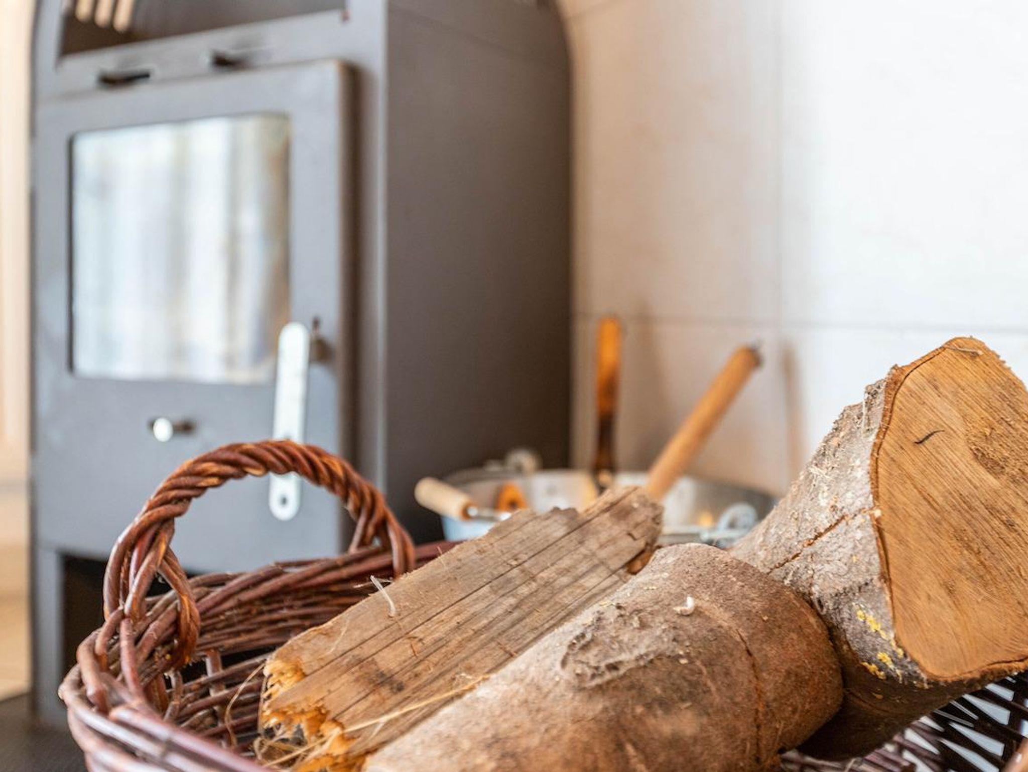 Im Obergeschoss befindet sich ein Schlafzimmer mit einem Doppelbett und ein Kinderzimmer mit einem Etagenbett. Auch befindet sich im Obergeschoss das grosszügige Badezimmer mit Dusche und WC. Diese Wohnung hat im Wohnbereich einen Kaminofen.