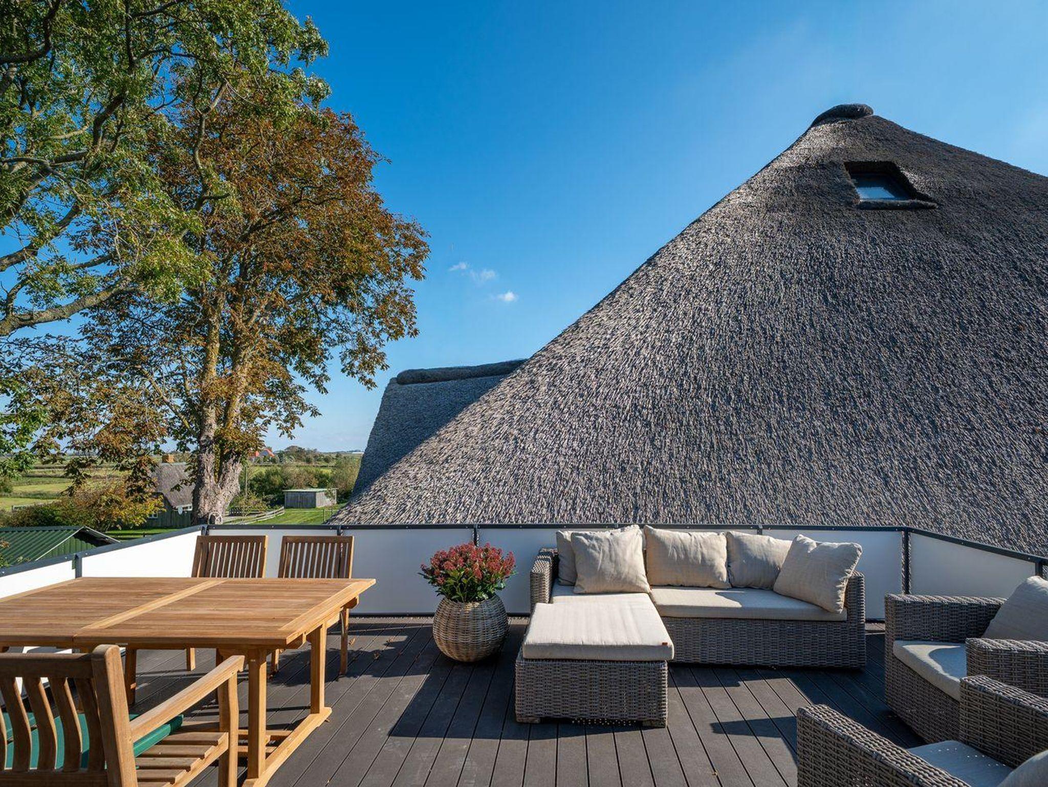 Die Ferienwohnung verfügt über ca. 60 m² Wohnfläche und ist wie folgt aufgeteilt: Ein geräumiger Wohnraum mit TV und Zugang zur großzügigen Dachterrasse. Die Küche ist voll ausgestattet und grenzend an den offenen Wohn- und Essenbereich. Ein separates Duschbad bietet allen Komfort. Vom Flur aus gelangen Sie in die Schlafzimmer mit einem Boxspringbett (1,8 x 2,0 m) und einem weiteren Schlafzimmer mit zwei Einzelbetten (0,9 x 2,0 m).