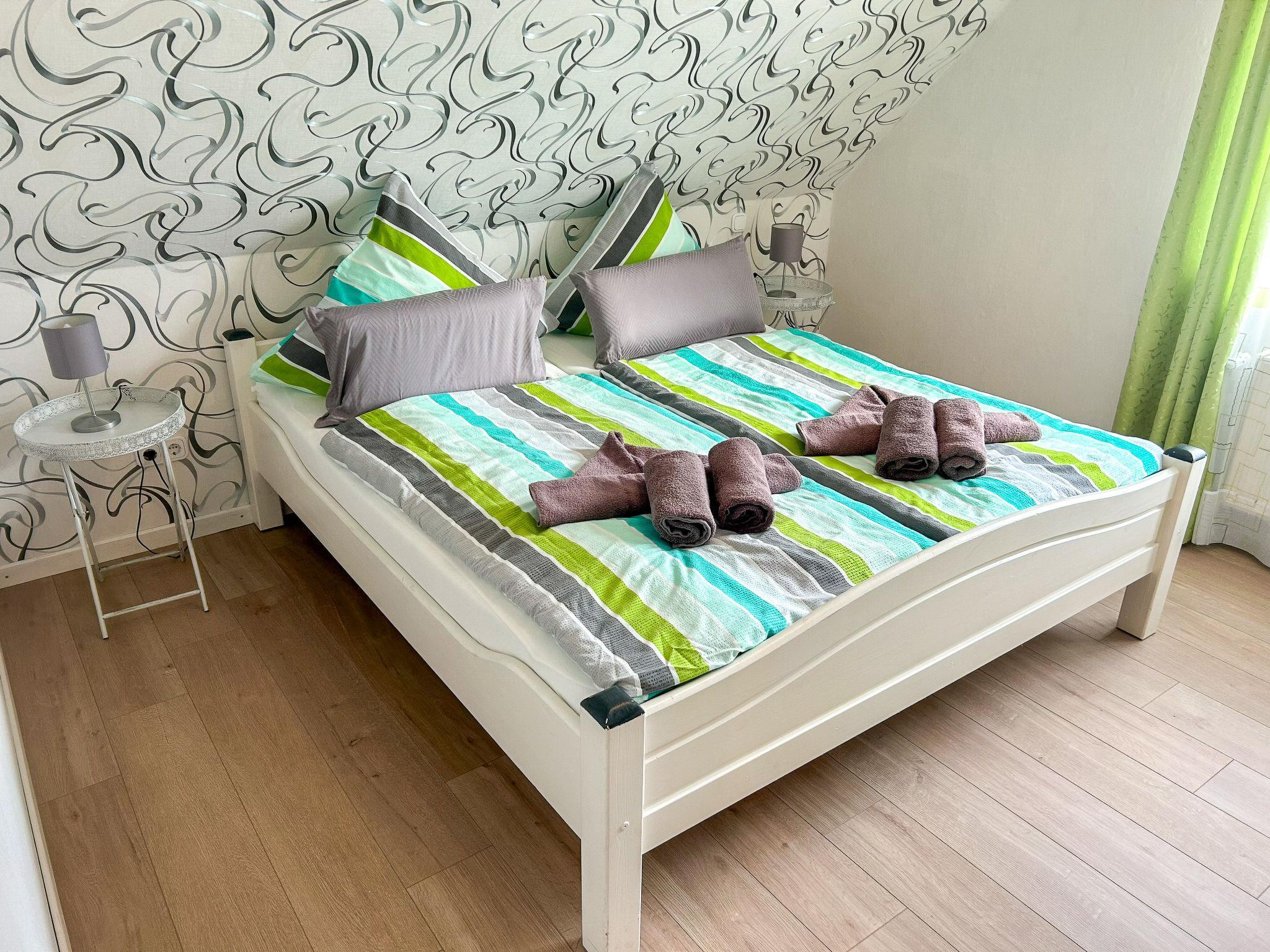 "Dori", 3-room apartment 50 m2, on the top floor. With sloping ceilings, cosy furnishings: living/dining room with satellite TV (flat screen). Exit to the balcony. 1 room with 1 double bed (2 x 90 cm, length 200 cm). 1 room with 2 beds (90 cm, length 200 cm), satellite TV (flat screen). Open kitchen (oven, dishwasher, 4 ceramic glass hob hotplates, microwave, electric coffee machine). Bath/shower/WC. Garden. Terrace furniture, balcony furniture, barbecue, sitting area. Facilities: baby cot for up to 2 year olds. Internet (WiFi, free). Please note: non-smokers only. Maximum 2 pets/ dogs allowed. Private entrance, smoke alarm.