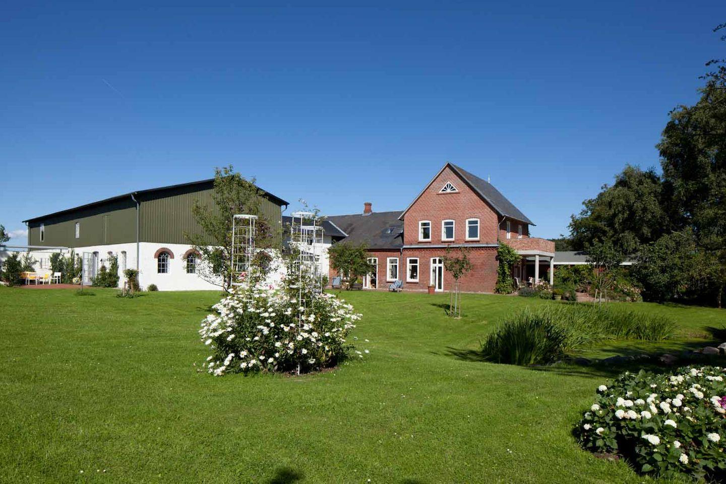 Die historische Hofanlage verbindet ländlichen Charme mit moderner Ausstattung. Zwischen den Arbeitseinheiten laden Garten, Wiesen und Felder zu Spaziergängen, Gesprächen oder stillen Momenten ein. Die Nähe zur Förde ermöglicht zusätzliche Auszeiten am Wasser – ideal für frische Gedanken und neue Perspektiven.
