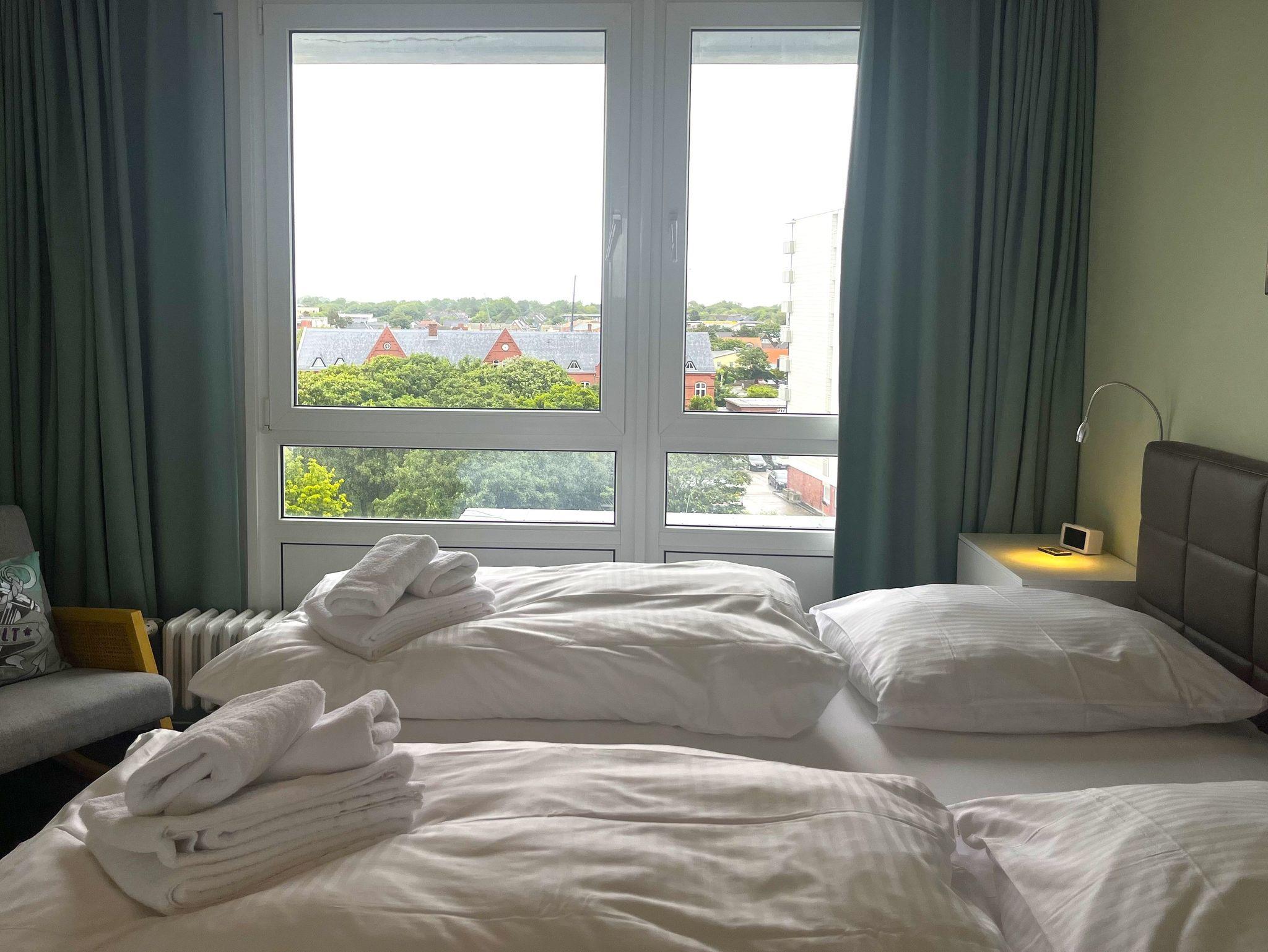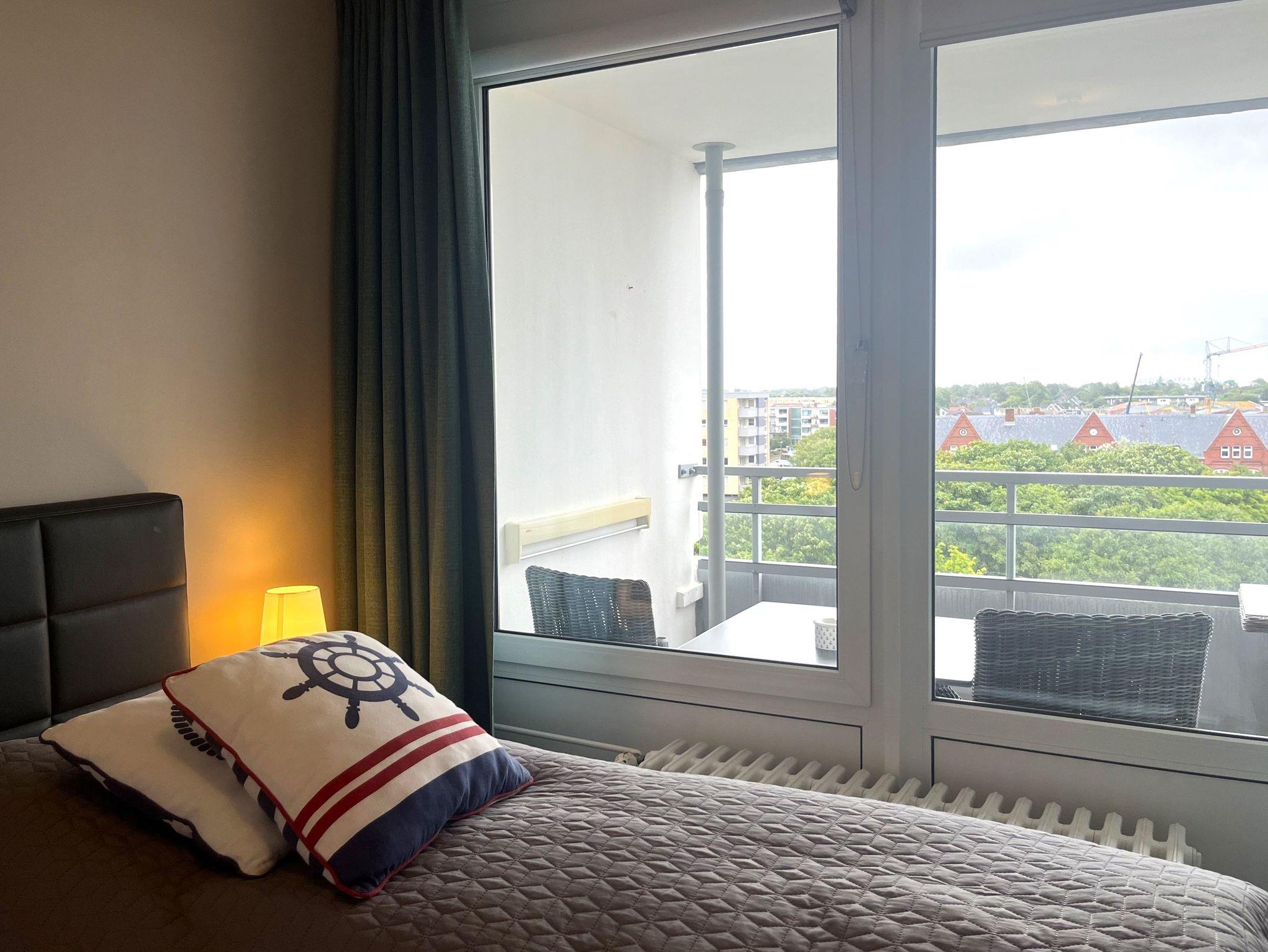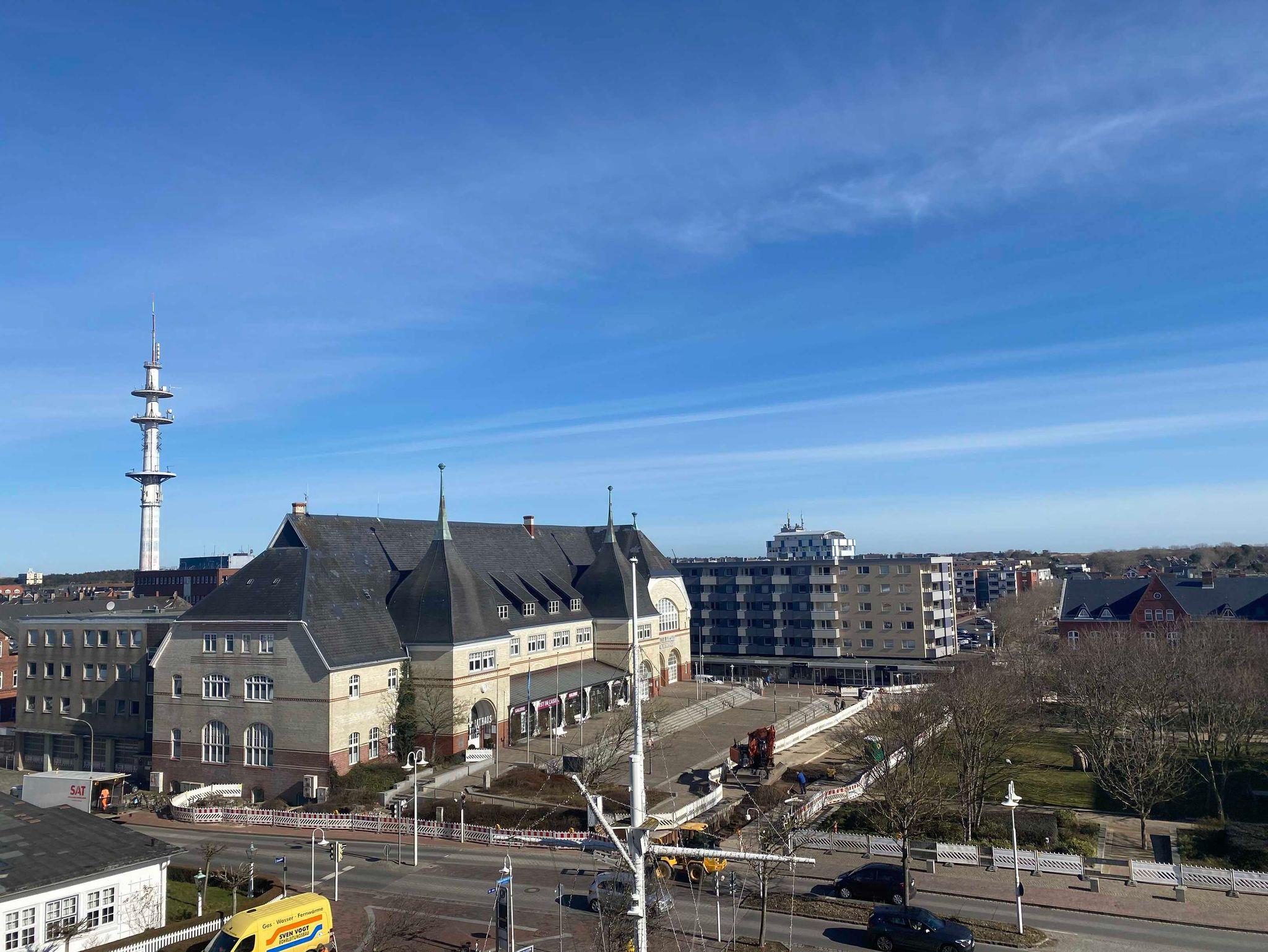 Die Ferienwohnung Skriien Mö befindet sich in der Paulstraße 2 im Sparkassengebäude. Die hochwertig renovierte Wohnung liegt in der 3. Etage des 7-geschossigen Appartementhauses. Durch den Haupteingang gelangen Sie mit dem Aufzug barrierefrei in das Appartement.
