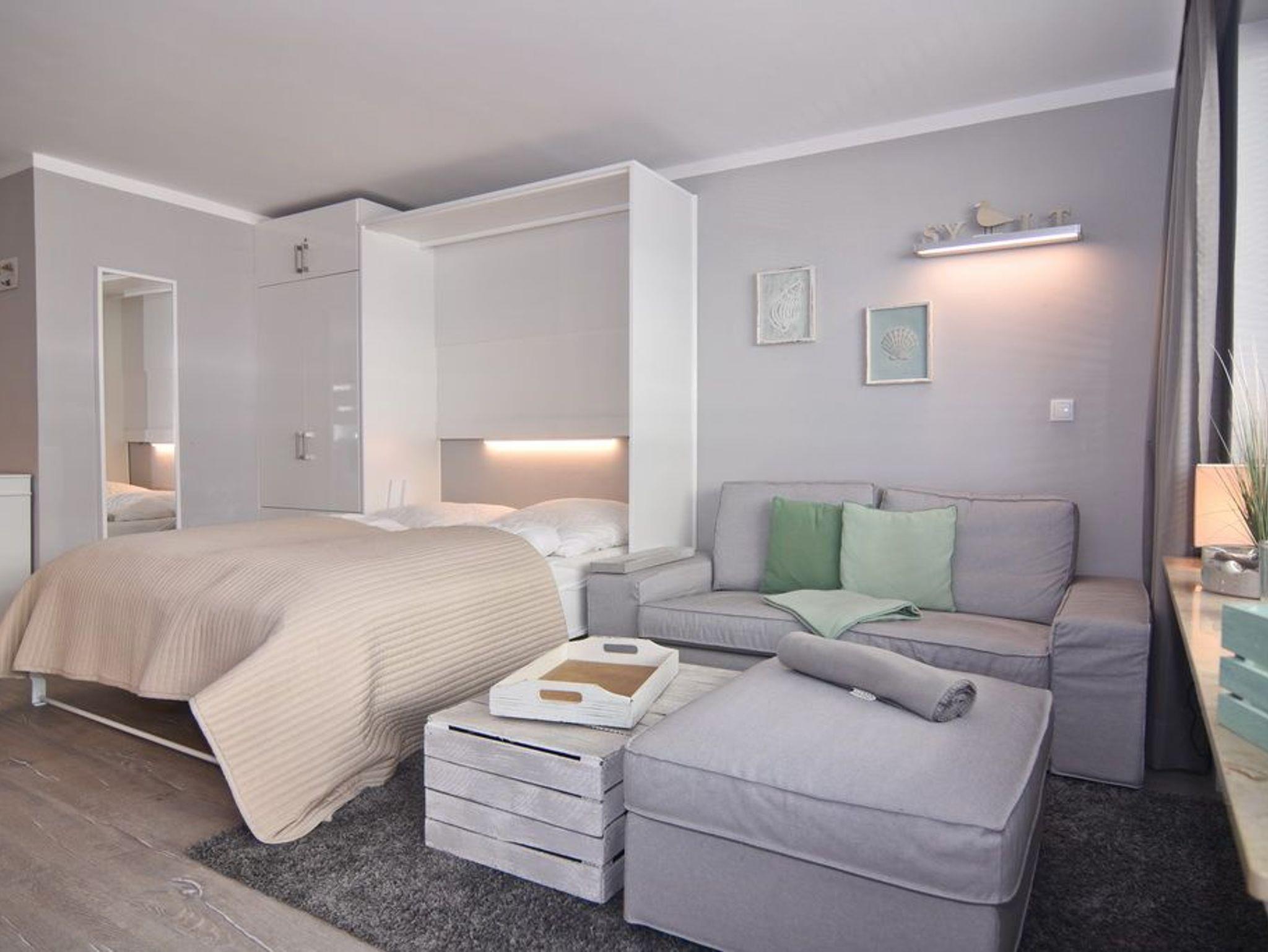 Moderne 1-Zimmer-Ferienwohnung in zentraler und strandnaher Lage. Nur ein Katzensprung vom Wasser entfernt, bietet Ihnen dieses Domizil den perfekten Ausgangspunkt für Ihren Urlaub. Der Wohn-/Schlafraum ist mit Doppelschrankbett (160x200 cm), 2-Sitzer-Couch, einem Essplatz und zusätzlichem Sitzplatz am Tresen der offenen Küche ausgestattet. Für die Unterhaltung sorgt ein großer, drehbarer Flachbild-TV. WLAN (ohne Gewähr). Auf dem möblierten Westbalkon genießen Sie die Sonnenstunden. Die offene Küche verfügt über einen Geschirrspüler und eine Mikrowelle. Ein modernes Duschbad/WC rundet die Ausstattung ab. Ein Fahrstuhl ist im Haus vorhanden - vorab sind ca. 10 Stufen zu gehen. Bettwäsche und Handtücher sind zur Anreise aufgezogen. Ein PKW-Stellplatz kann kostenpflichtig zugebucht werden.