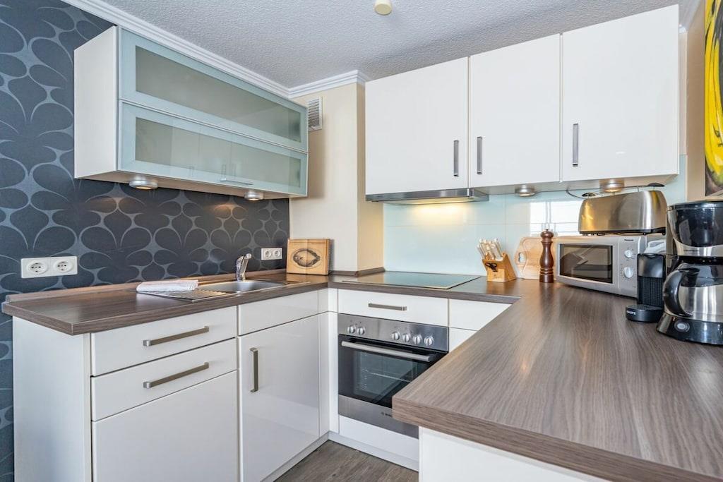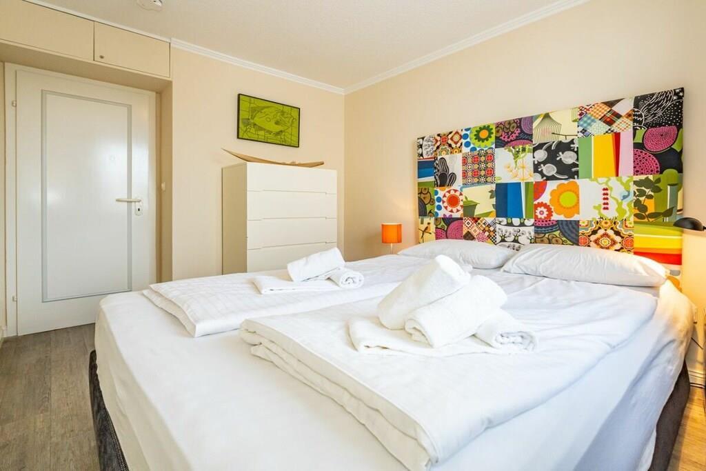 Apartment 23 Haus Dünenburg for max. 2 people / Non-smoking This 2-room apartment with an open-plan kitchen is located on the 3rd floor and has a north-facing balcony. Kitchen Microwave Dishwasher 4-burner ceramic hob Oven Living/dining room Cable TV Radio/CD player iPod docking station Telephone Balcony Bedroom Shower room Garage space no. 23 behind the house Note: For shorter booking periods, please check the calendar for follow-up bookings when making your inquiry.