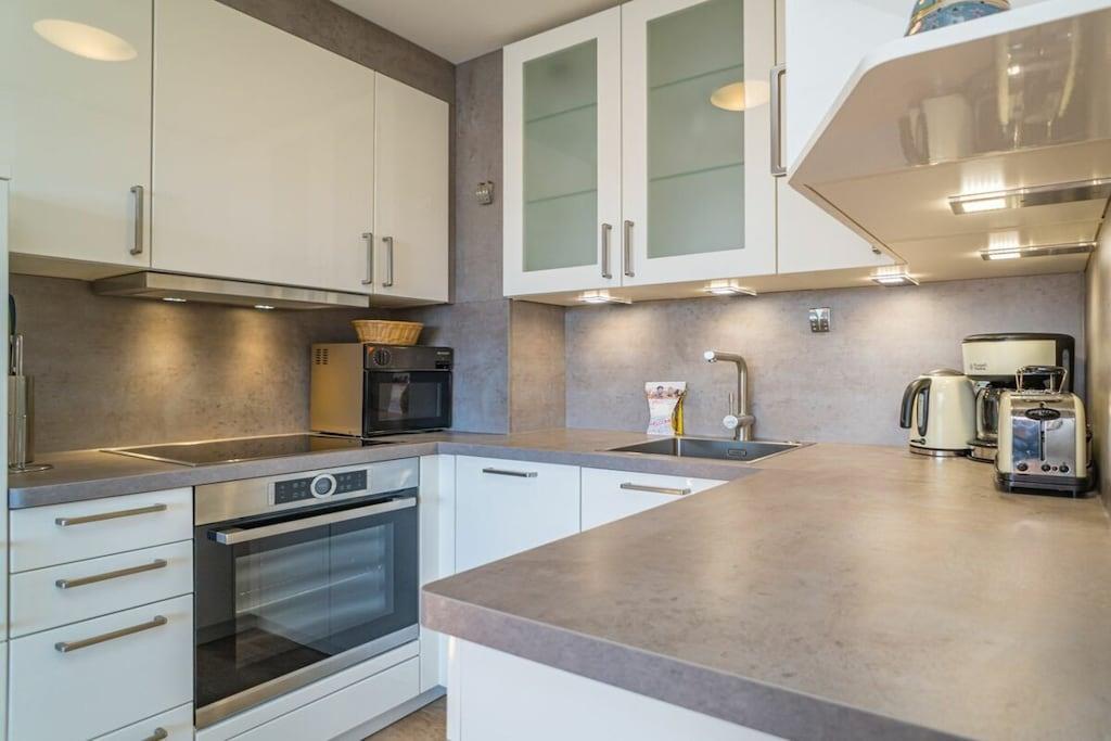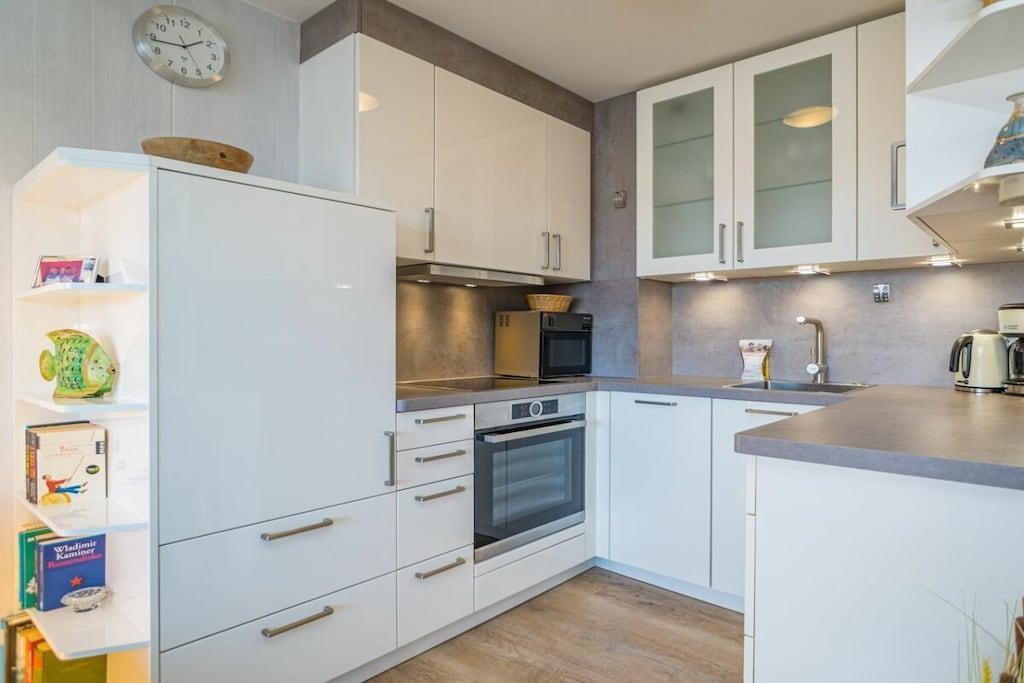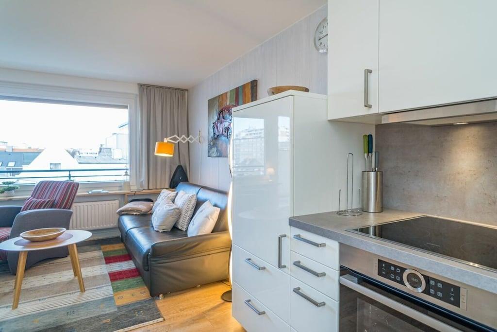 Apartment 31 Haus Dünenburg for max. 2 people Beautiful holiday apartment in the heart of Westerland/Sylt - quiet 2-room apartment on the 4th floor with elevator. Approx. 150 meters from the beach, parallel to Friedrichstraße. All shops and restaurants are within easy walking distance. Our holiday apartment, newly renovated in winter 2017/18, awaits its guests. A new, fully equipped kitchen with a ceramic hob, microwave, dishwasher, coffee maker, toaster, kettle, etc. The living room features a leather sofa, a large TV, and a cozy dining area. A new bathroom with a large shower and a cozy bedroom with a TV. The north-facing balcony provides the fresh air you need for an evening glass of wine. A washing machine and dryer are part of the well-maintained complex and can be used for a coin-operated service. An iron and ironing board are provided. The house and apartment are wheelchair accessible. Max. 2 people - non-smoking apartment and no pets.