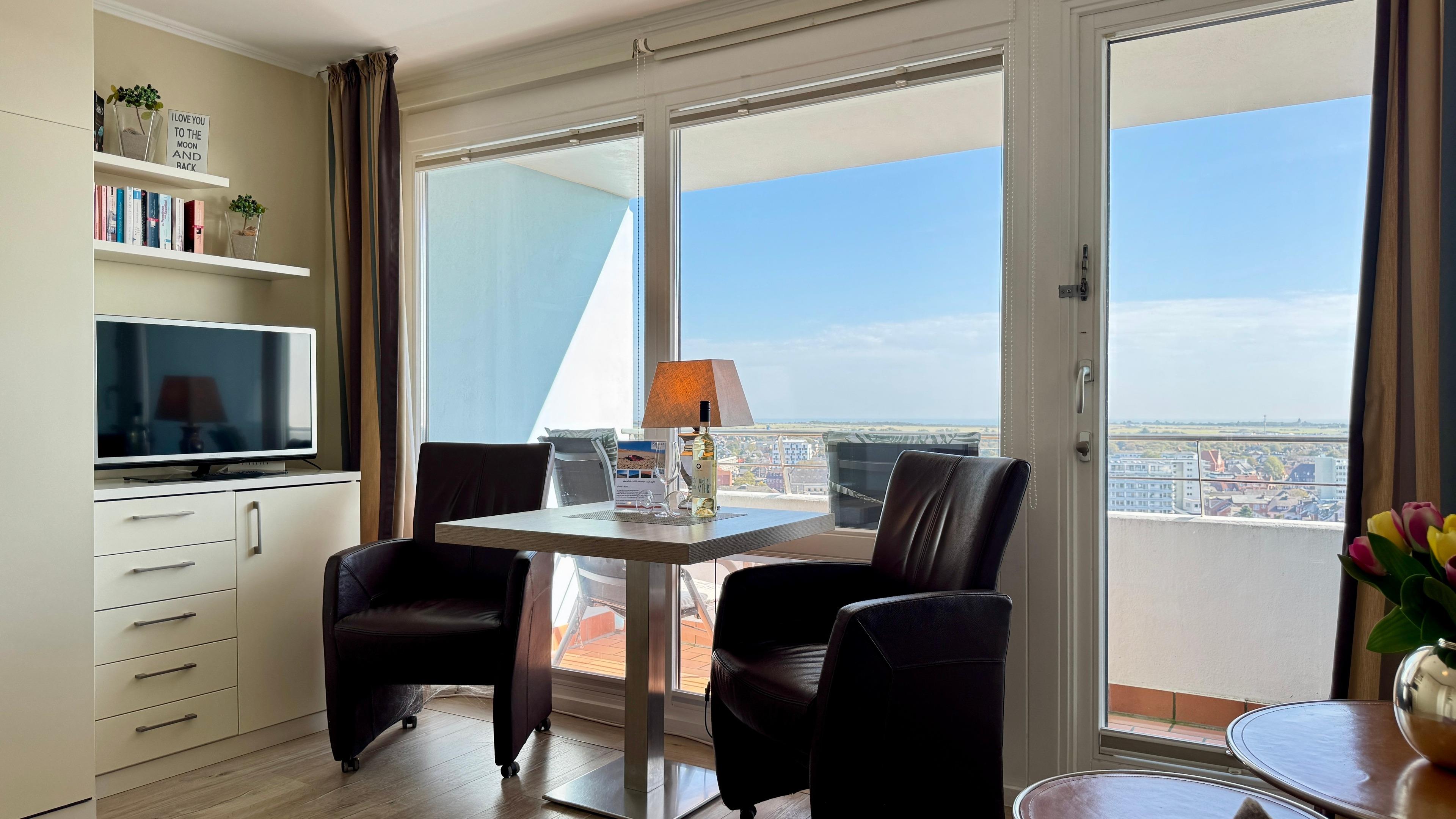 Schöne, sehr gepflegte 1-Zimmer-Nichtraucher-Wohnung in der 12. Etage mit Ostbalkon und traumhaftem Weitblick über die Insel und Westerland.