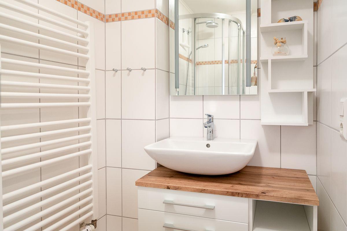 Das Wohnzimmer überzeugt durch ein durchdachtes Raumkonzept mit Sofa, sowie TV und kostenfreiem WLAN. Große Fenster sorgen für viel Tageslicht. Mit dem 160x200cm großem Boxspringbett werden Sie einen erholsamen Schlaf haben. Im Badezimmer mit Dusche, WC, modernem Waschbecken, Kosmetikspiegel, Spiegel, Haartrockner sowie Hand- und Badetüchern finden Sie alles, was Sie für einen entspannten Aufenthalt benötigen.