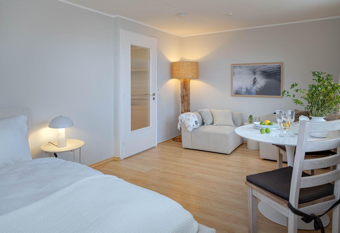 Die „Dünengöre“ ist ein modernes 1-Zimmer-Appartement, das mit frischem Charme und klarer Eleganz überzeugt. In unmittelbarer Nähe zum weitläufigen, feinsandigen Strand von Westerland gelegen, bietet sie den idealen Rahmen für einen erholsamen Aufenthalt zu zweit.