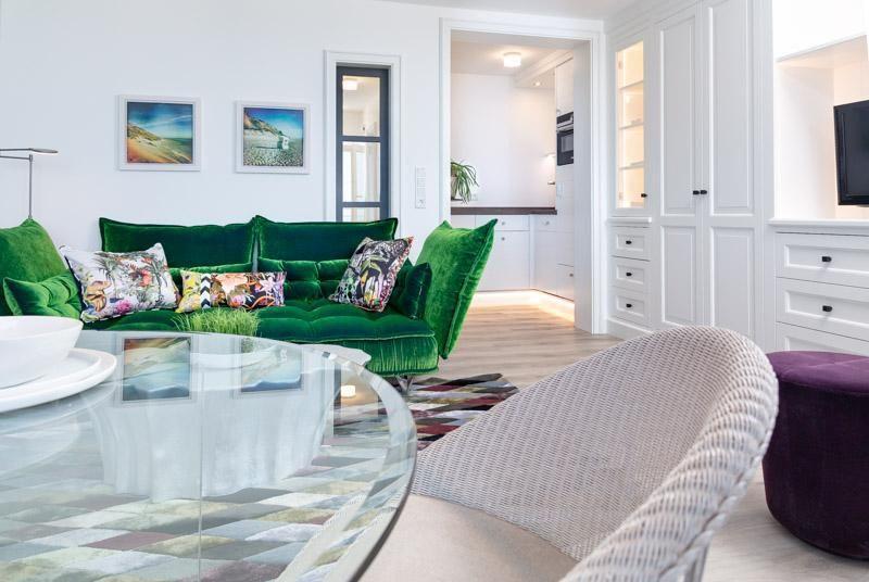 Fantastische Aussicht auf das Meer, top modernes Wohndesign, großzügige Raumaufteilung, tolle Einbauten, beste Lage. Diese Wohnung wird Sie sofort begeistern: Direkte Strandlage, 5.Etage, Westbalkon mit tollen Blick auf die Nordsee, gegenüber dem Strand und Schwimmbad gelegen, sowie in unmittelbarer Nähe zur City. Wohn-/Nutzfläche ca. 45 m². Die Wohnung wurde nach modernsten Maßstäben gestaltet und wird auch höchsten Ansprüchen gerecht. Mit schicken Designtapeten, dem coolen giftig grünen Breetz© Sofa in Übergröße, und den tollen Einbauten, sticht diese Wohnung sehr angenehm von den üblichen Angeboten auf dem Westerländer Ferienwohnungsmarkt hervor. Die Bilder sprechen für sich. Helles großes Wohnzimmer mit viel Stauraum, Essplatz, W-LAN, TV, Radio. Küche in Vollausstattung mit Ceranfeld, Kühlschrank, Geschirrspüler, Nespresso ©Kapselmaschine, Toaster, Wasserkocher. Das moderne Bad ist mit einer bodentiefen großzügigen Dusche ausgestattet worden. Im Schlafzimmer befindet sich ein 180x200 großes Doppelbett. Im Haus: Fahrstuhl (nicht ebenerdig, hält nicht in den Zwischenetagen). Ein PKW Stellplatz kann auf Anfrage und Verfügbarkeit dazu gebucht werden. 2er Belegung, keine Tiere, Nichtraucher.