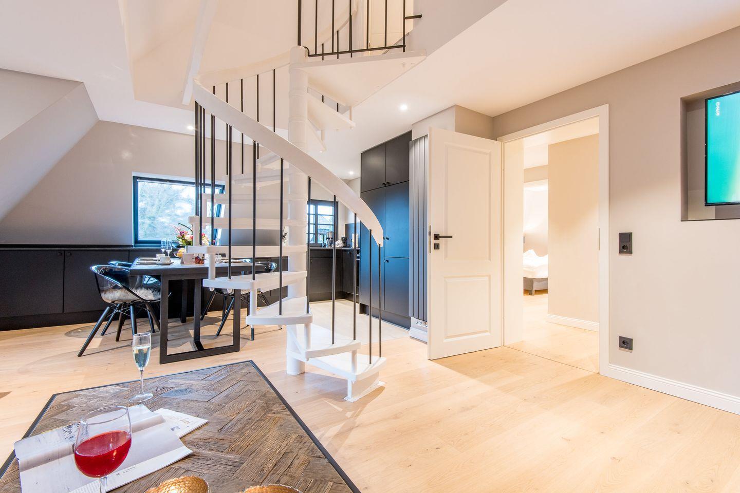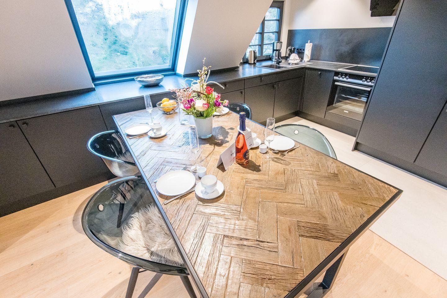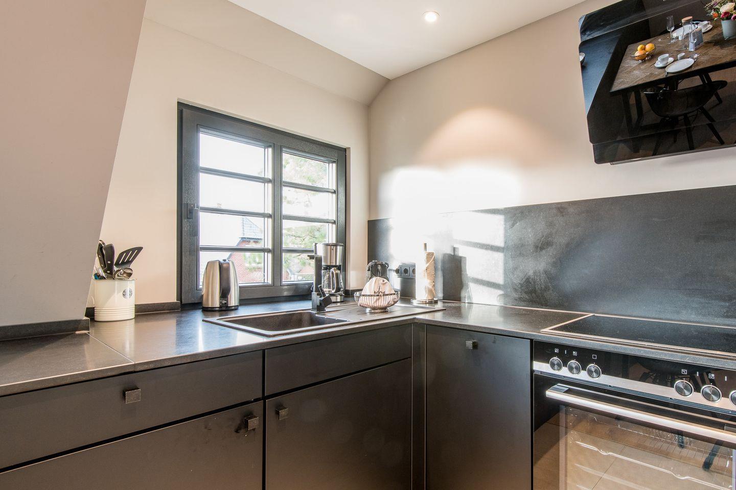 Die offen gestaltete Küche ist bestens ausgestattet mit einem Backofen, Geschirrspüler, Filterkaffeemaschine und Nespresso-Maschine. Hier finden Sie alles, was Sie für die Zubereitung von köstlichen Mahlzeiten benötigen.