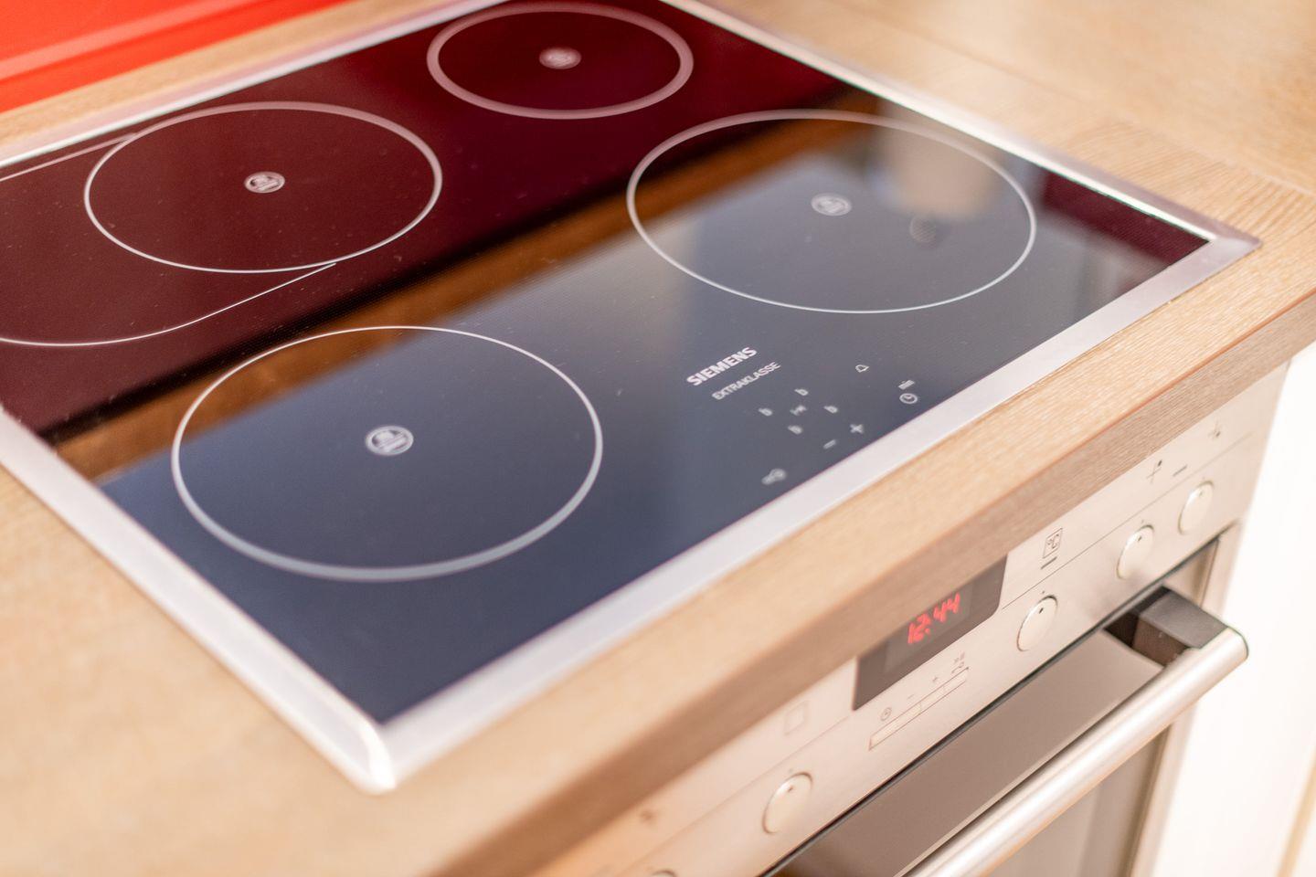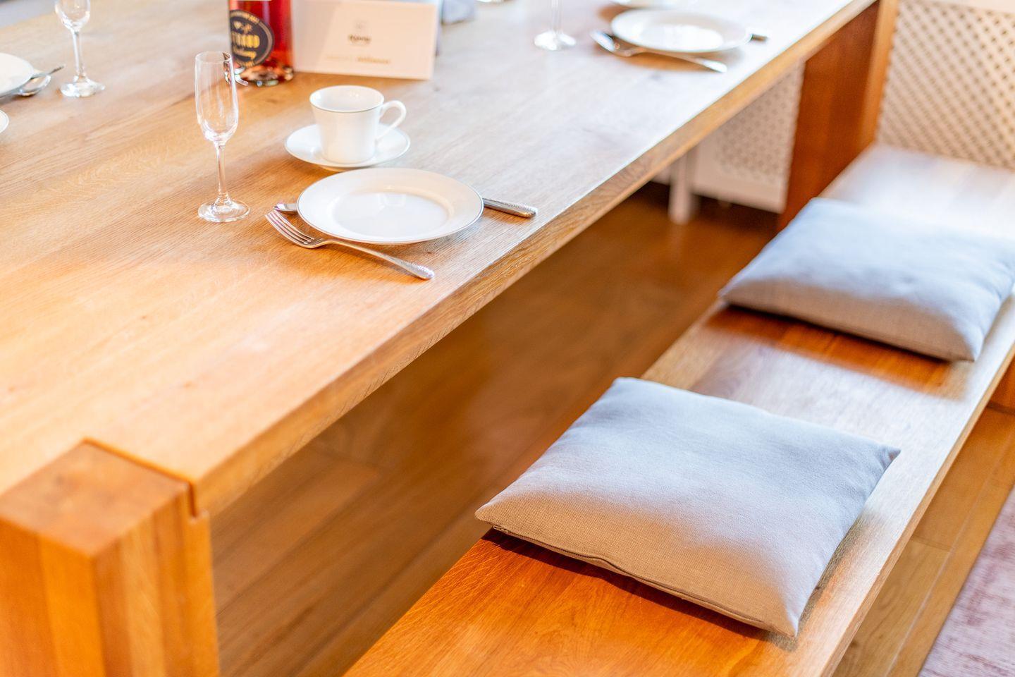 Die helle, offen gestaltete Küche ist modern ausgestattet und bietet alles, was Sie für eine gelungene Mahlzeit benötigen, inklusive einer Filterkaffeemaschine und Espressomaschine. Der angrenzende große Esstisch ist ideal für gemeinsame Mahlzeiten und gesellige Stunden.